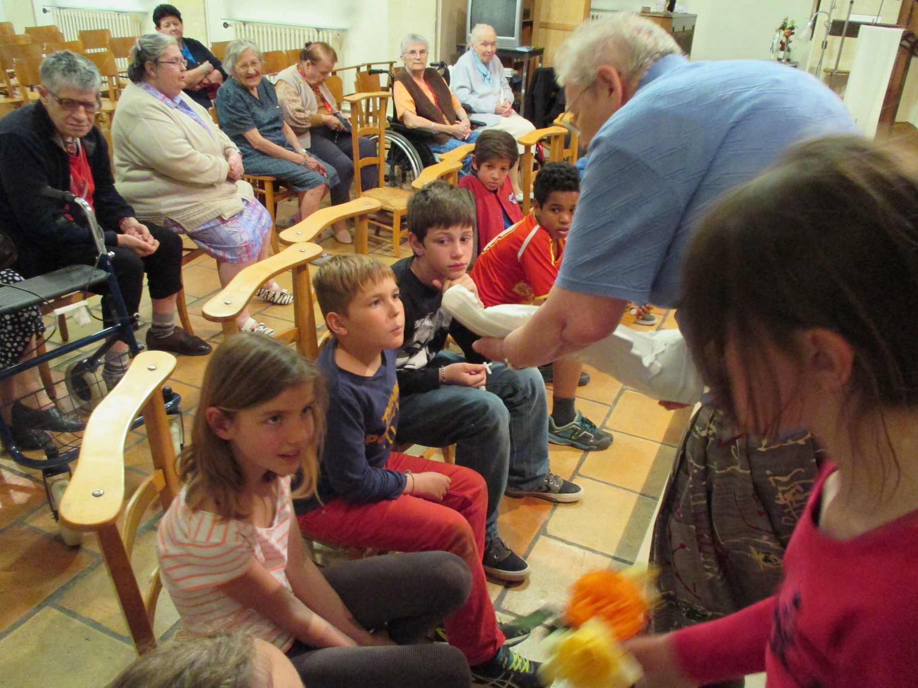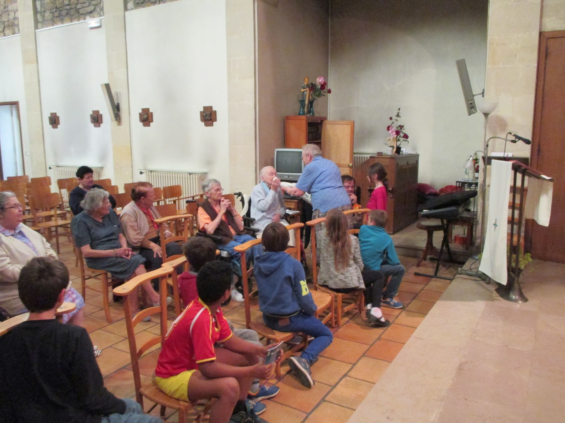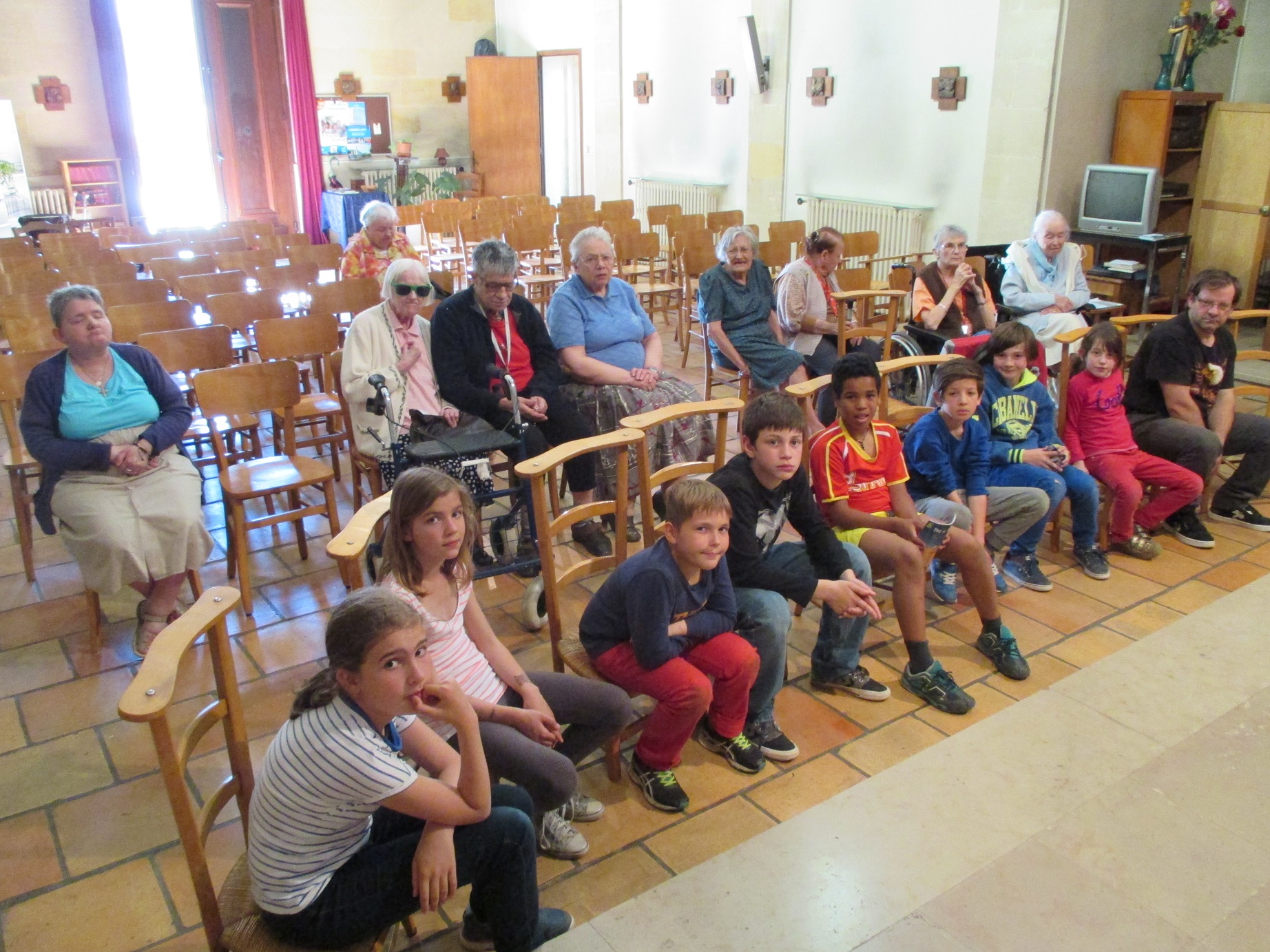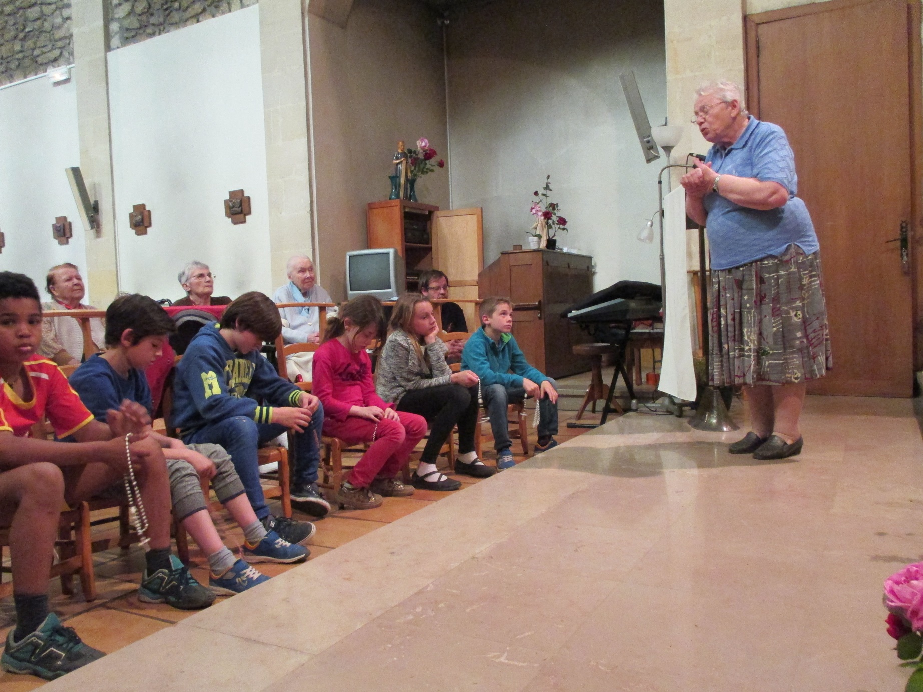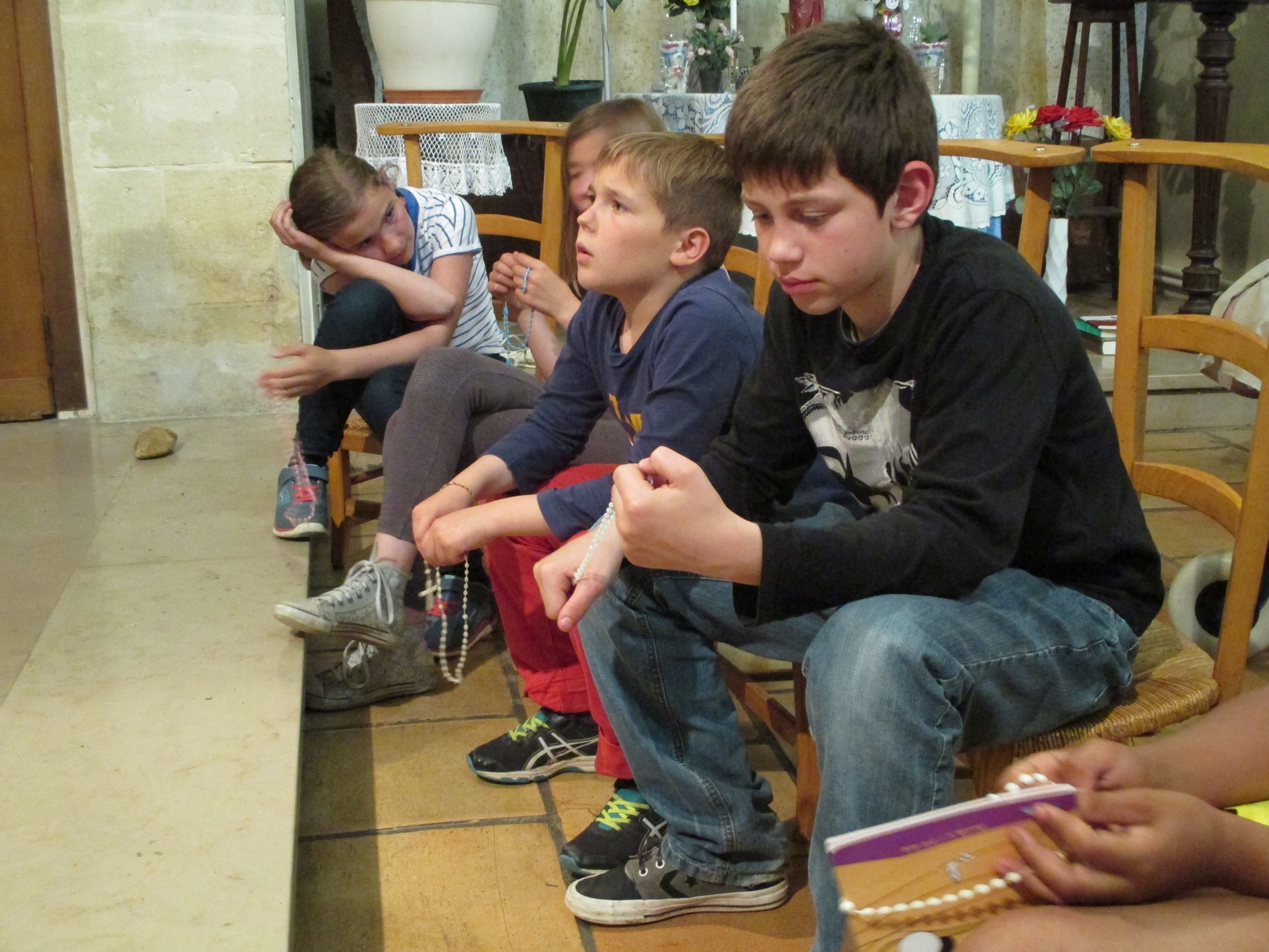 Nous, résidents, et en ce jour, mardi 24 mai, les enfants du catéchisme qui se sont joints à nous,  vous prions.