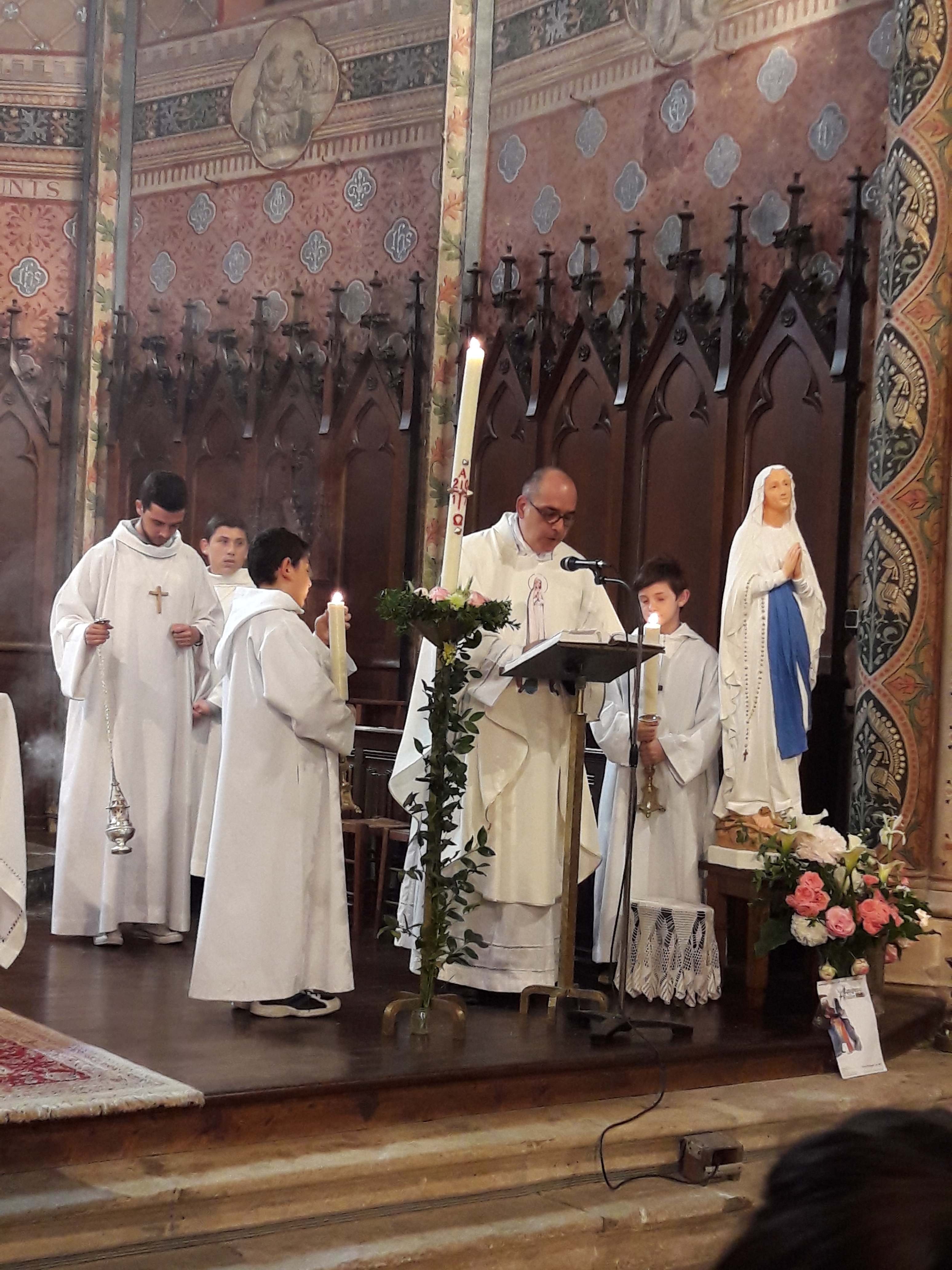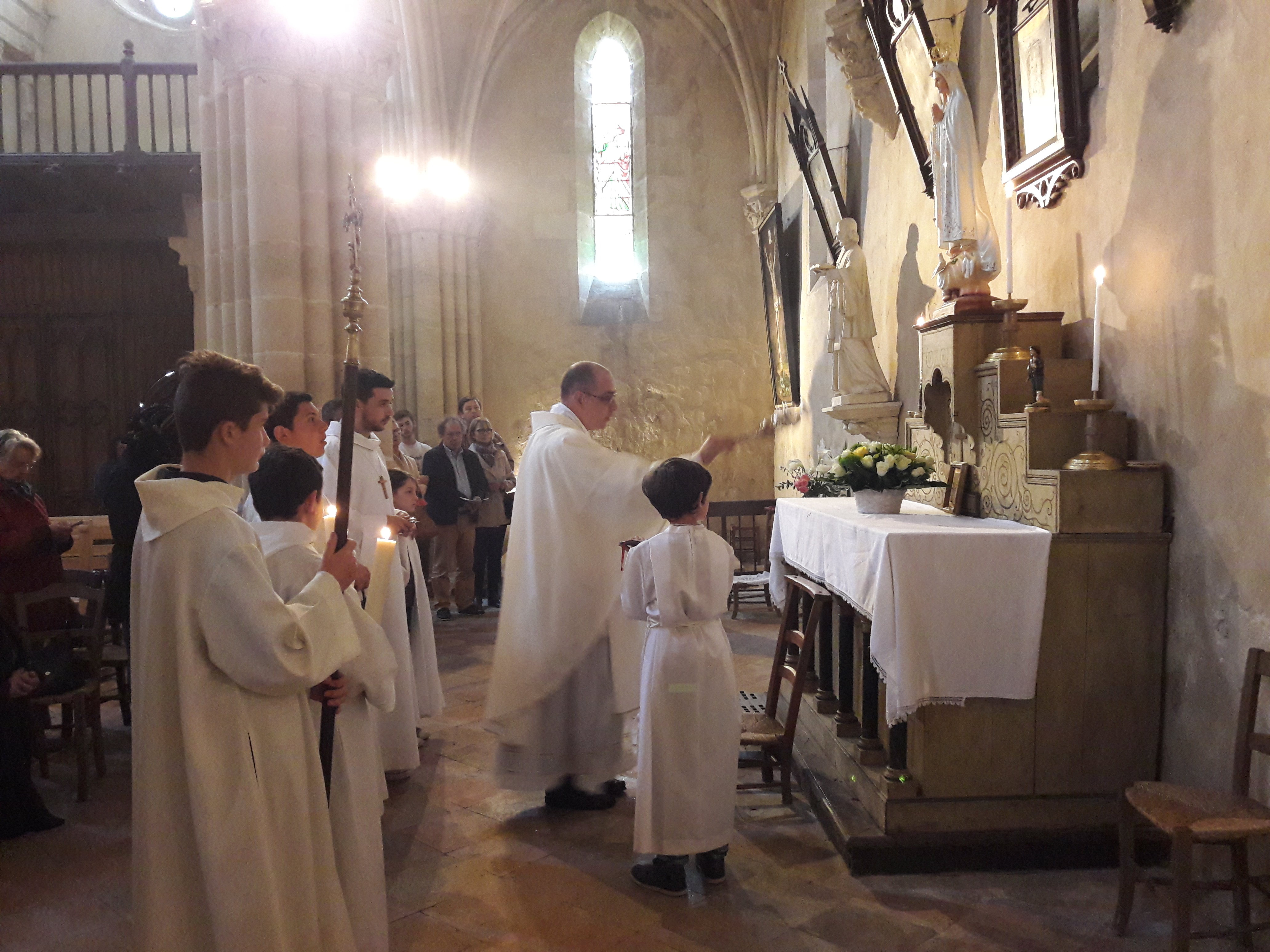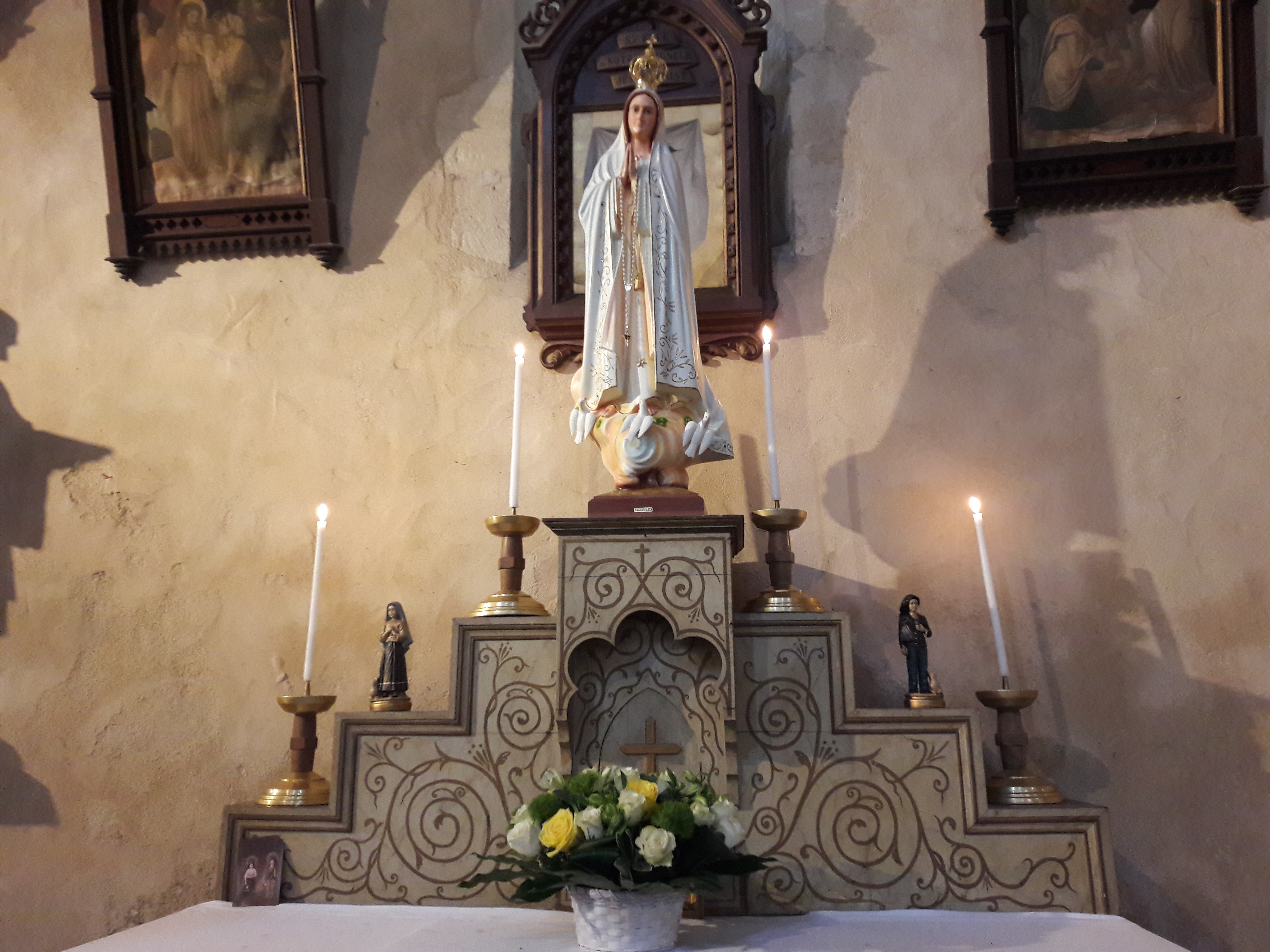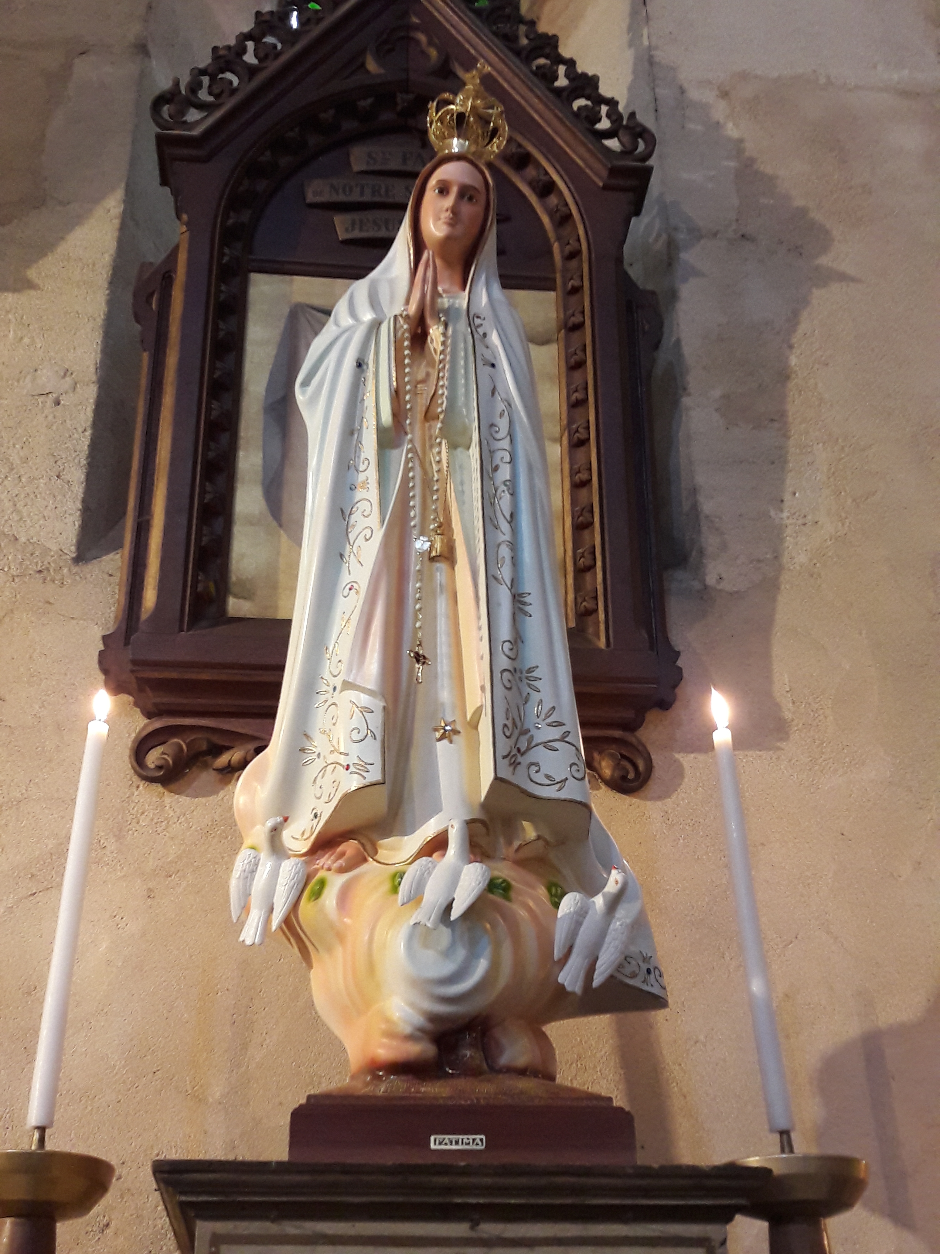 C’est à la fin de la messe dominical, que le Père Christophe a béni les statuettes de sainte Jacinthe et saint François , deux des trois voyants de Fatima, qui ont été canonisés par le pape François le week-end dernier à Fatima au Portugal.