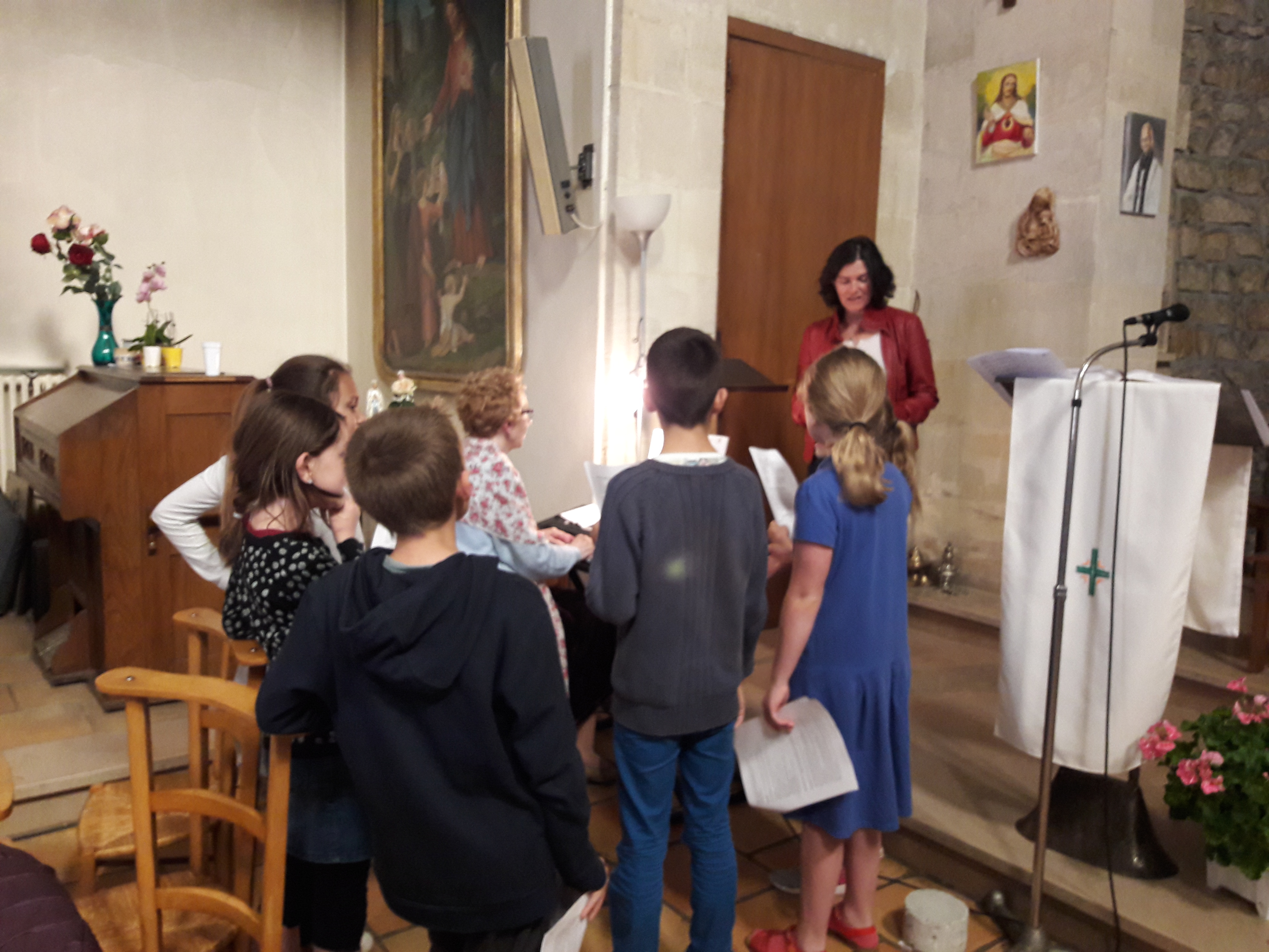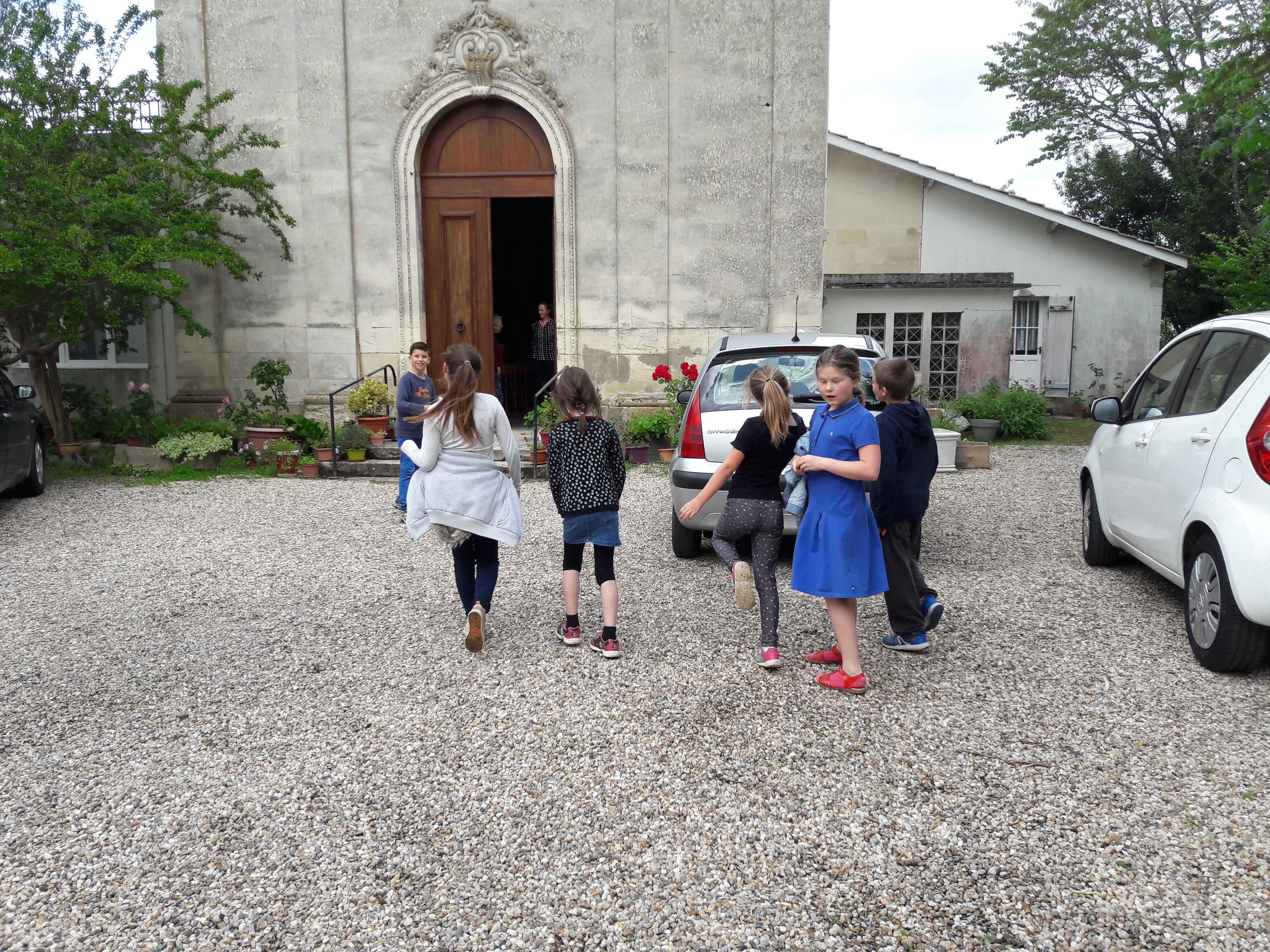 Samedi 20 mai Alice, Mathieu, Mathilda, Mélodie et Victoria se sont réunis autour de leurs animatrices de catéchisme au Bon-Pasteur, pour une journée de retraite en vue de leur première communion dimanche prochain. Ils ont été rejoints par Florian qui, lui, préparait sa troisième étape de préparation au baptême.