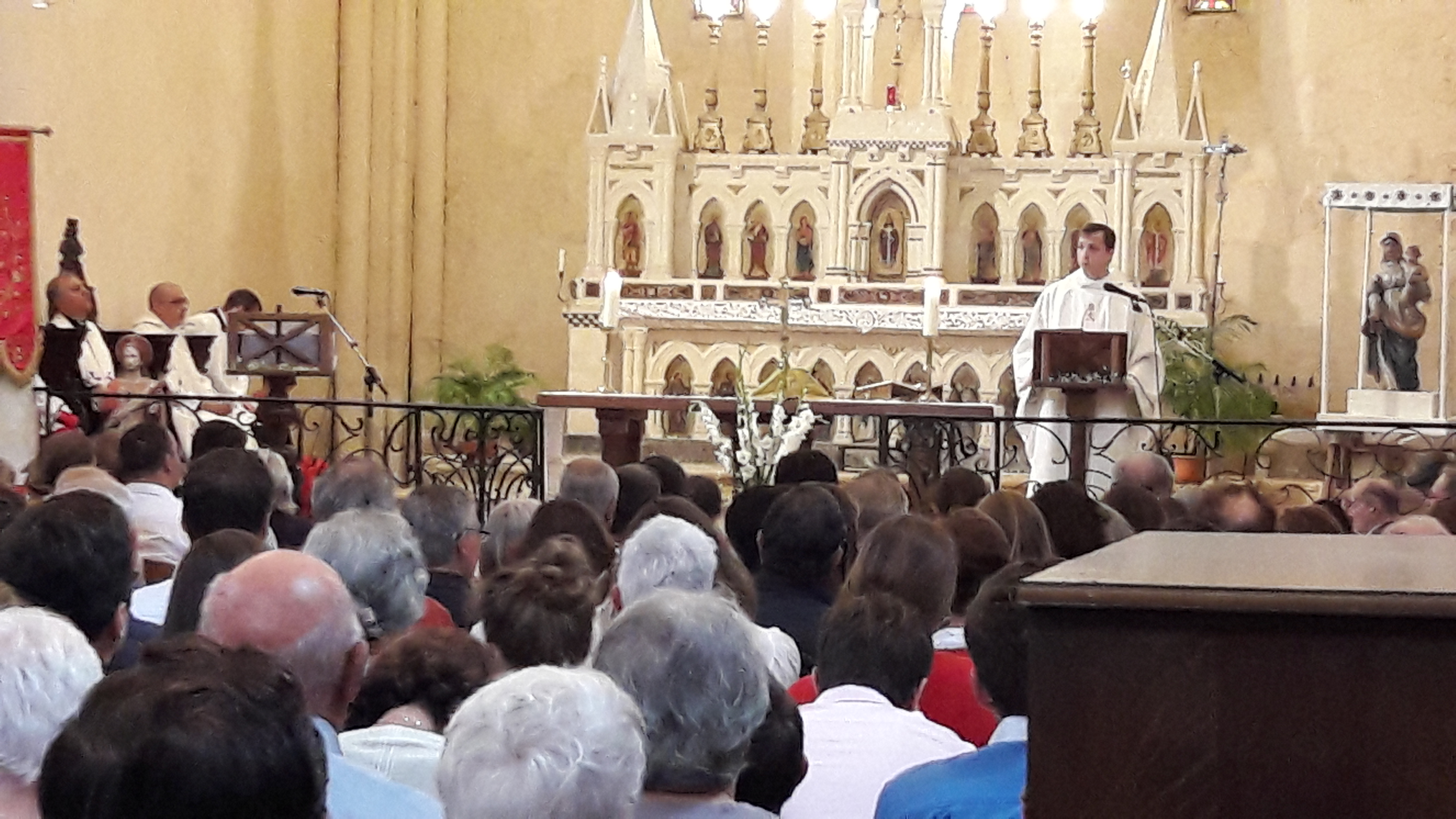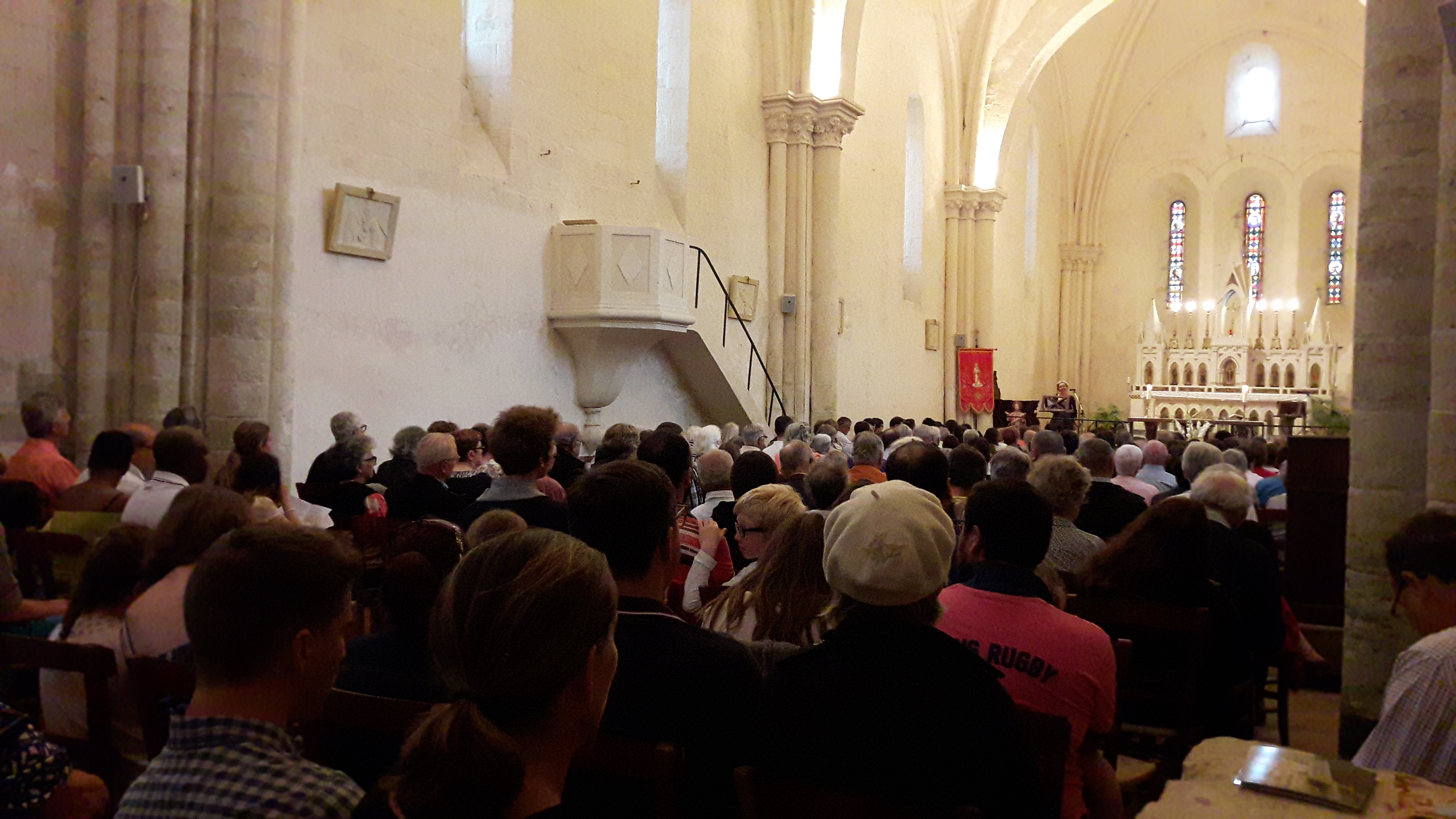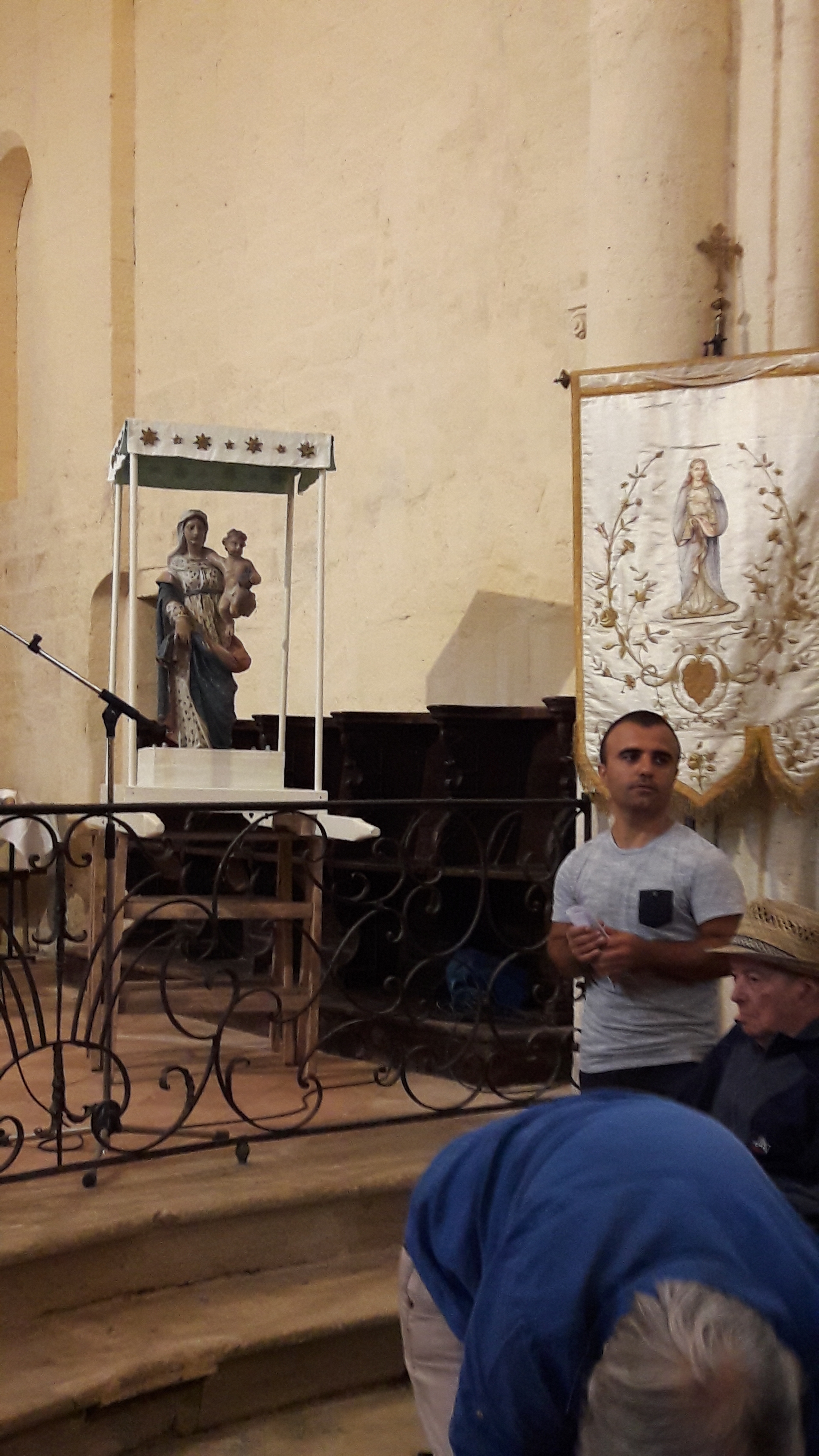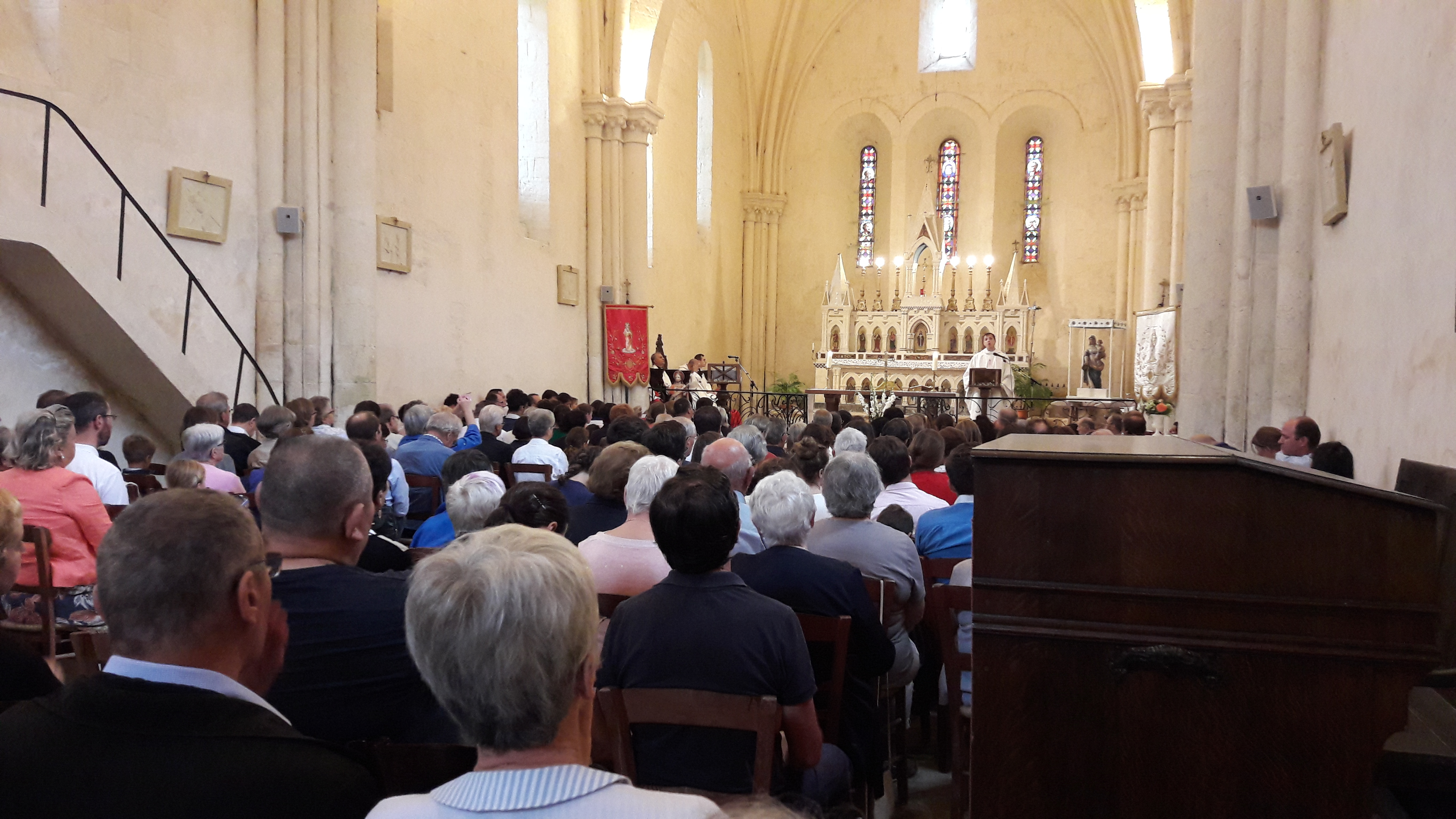 Une marche de 5 km qui les menaient à l’Abbaye Saint Nicolas de Blasimon où les attendaient une foule nombreuse réunie pour la célébration de la messe de l’Assomption présidée par le Père Pavel SYSSOEV, Prieur des Dominicains, et concélébrée par le Père Christophe, notre curé, et le Père Nabil MOUANES, prêtre maronite libanais . Était aussi présent l’abbé Fabrice GERASIMO, jeune séminariste en 4ème année.