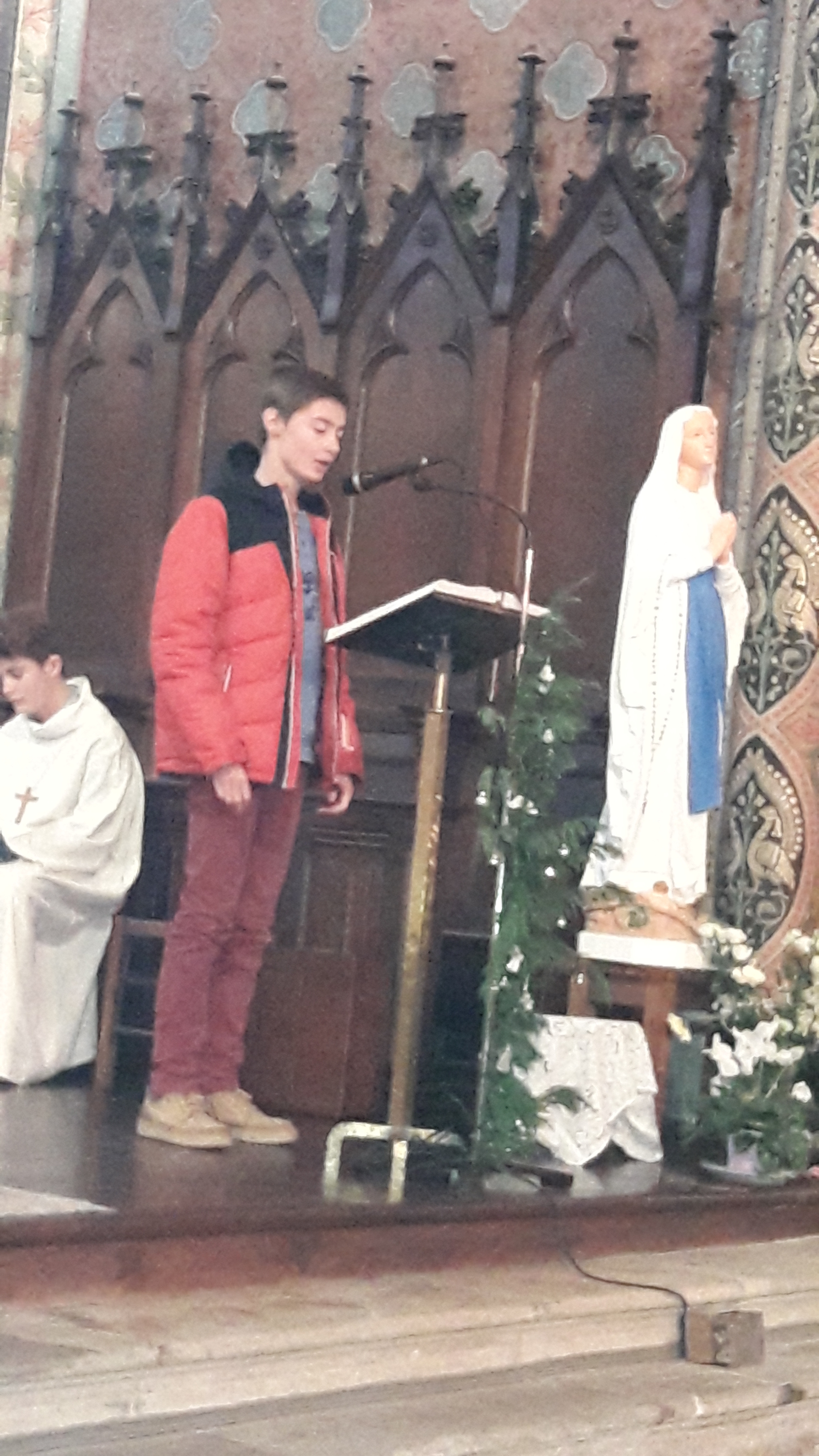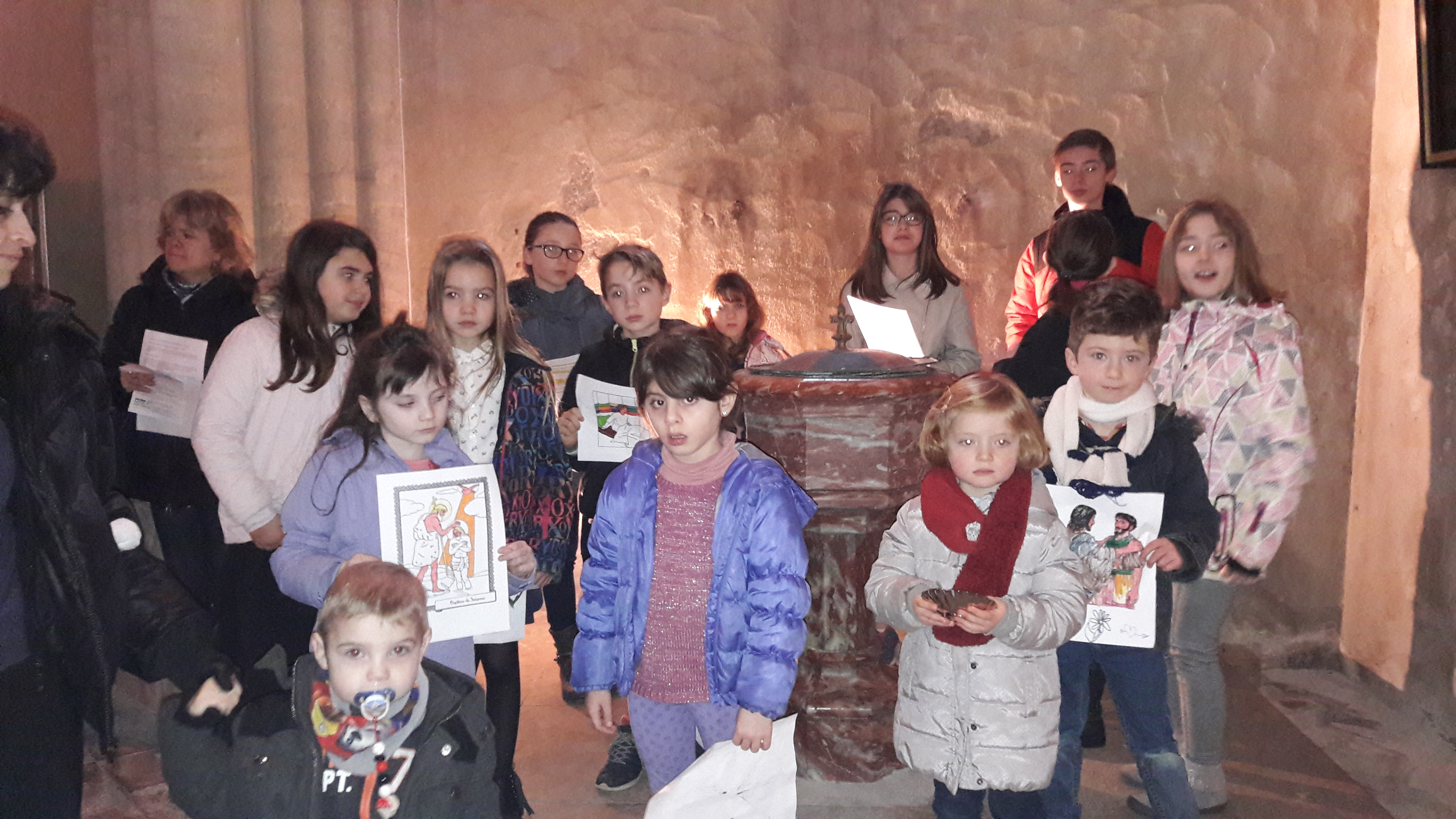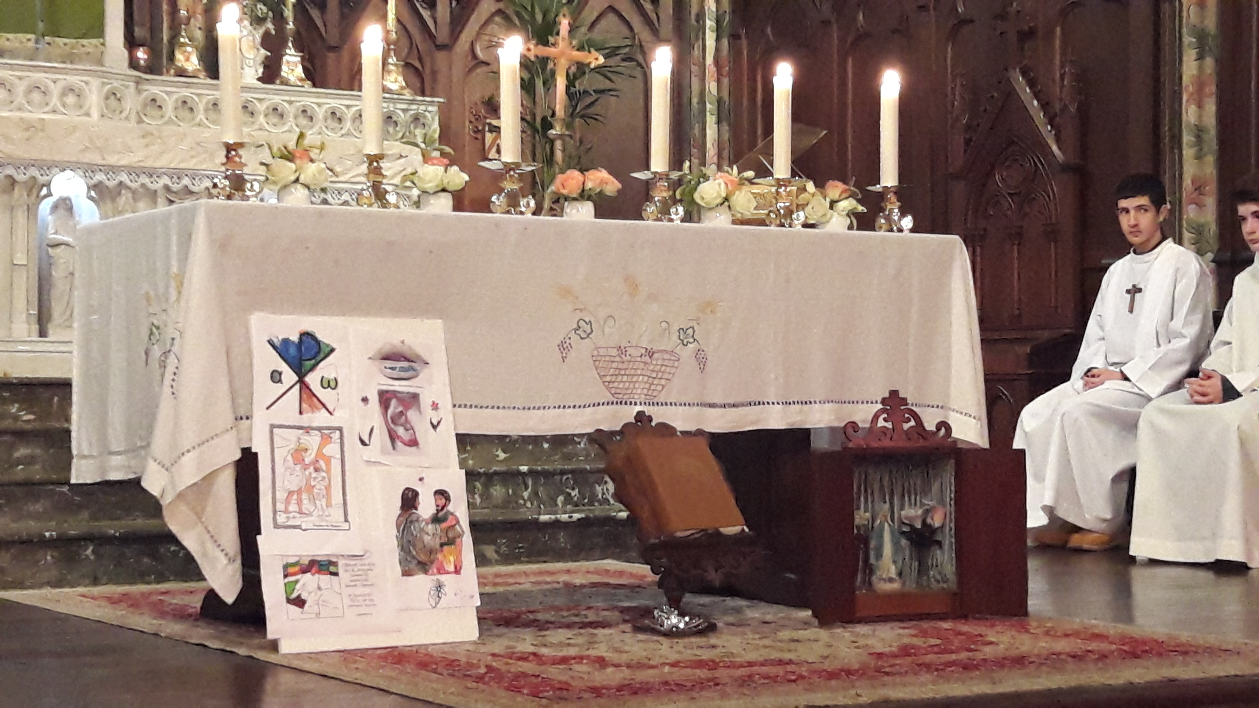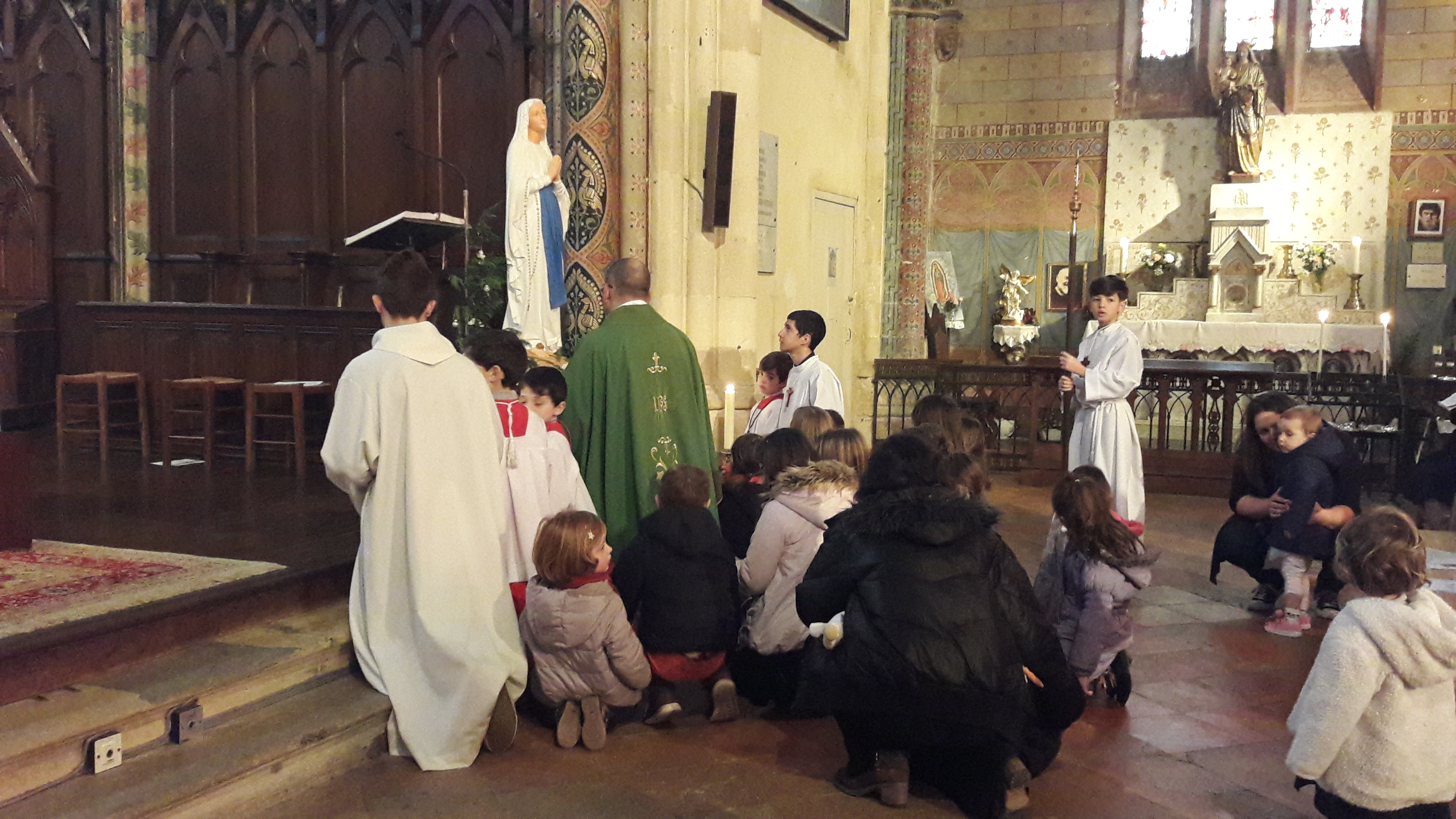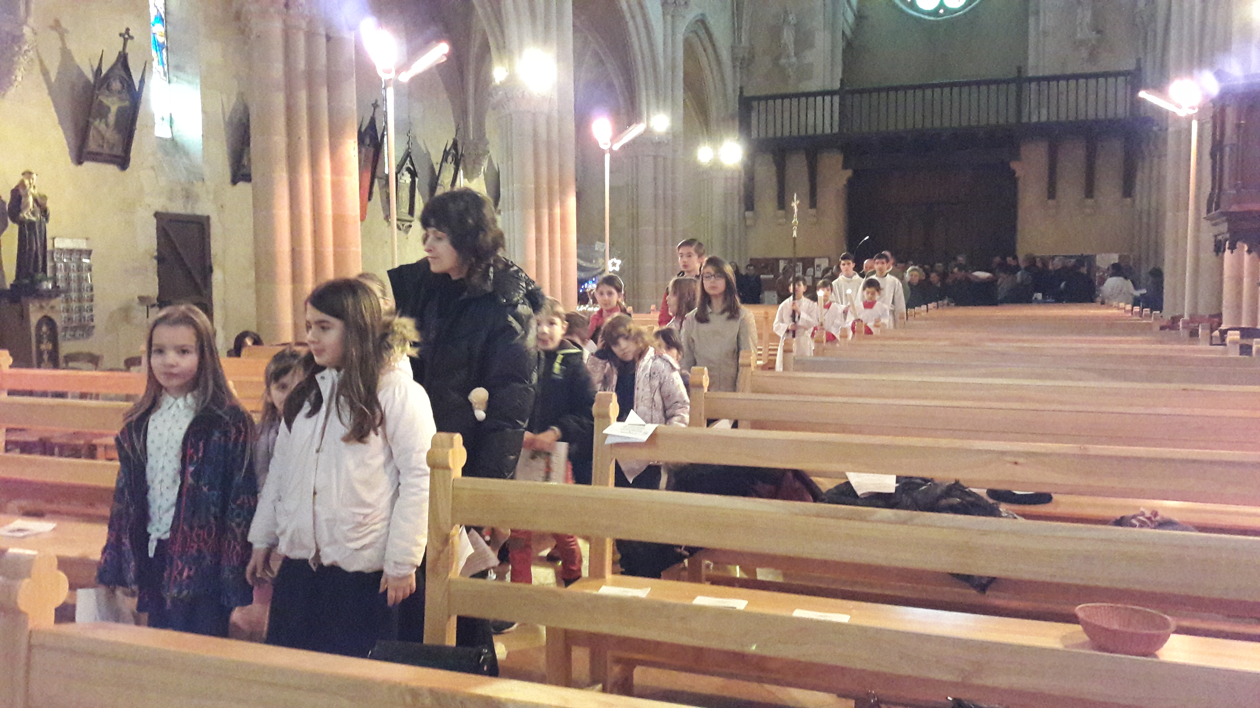 Avant le début de la célébration, une scénette jouée par les enfants, réunis autour du baptistère, relate la nuit où le jeune Samuel a entendu l’appel de notre Seigneur.