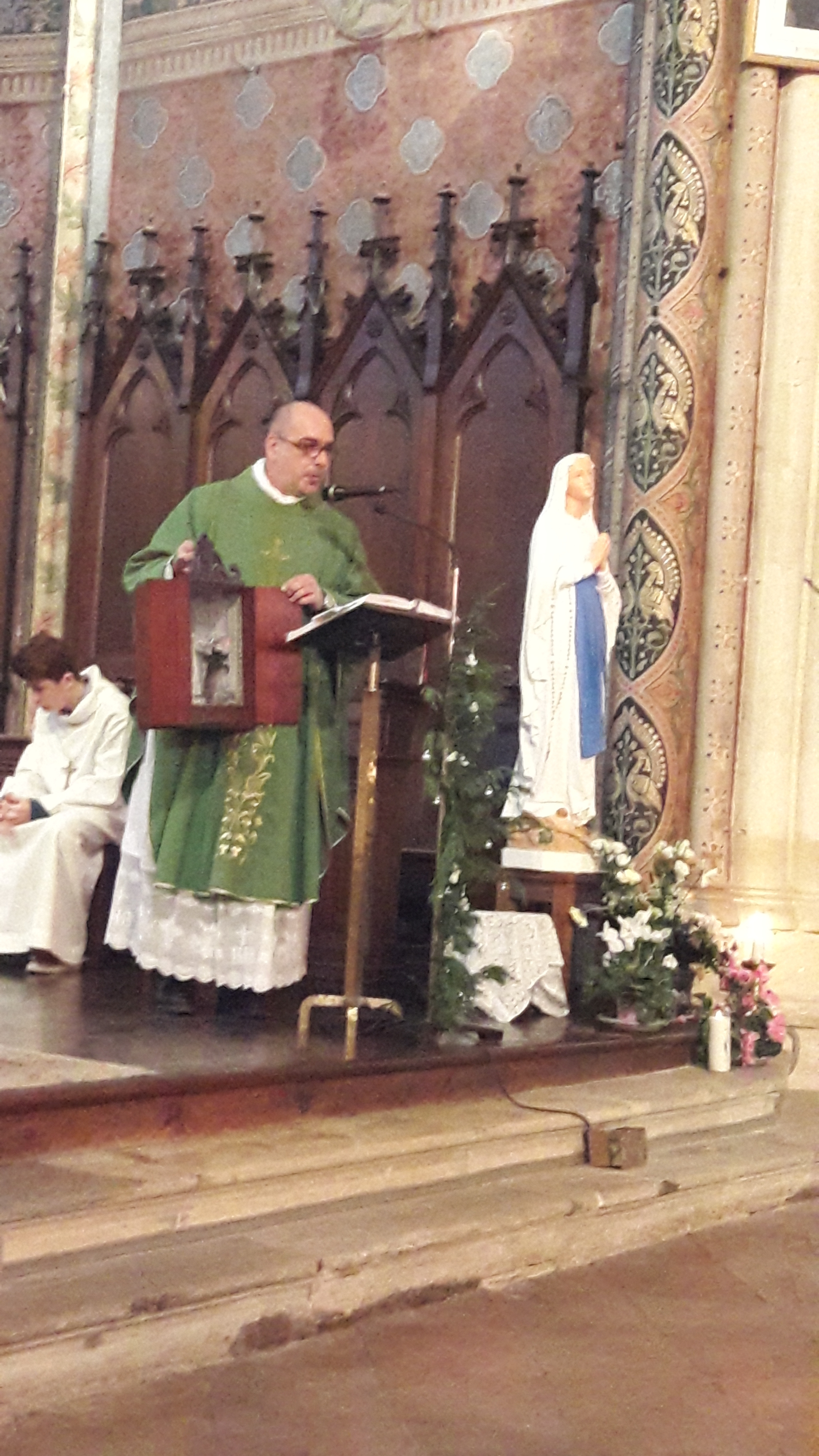 À la fin de son homélie, le père Christophe propose de démarrer une chaine de prière à Marie, chaque personne qui le désire peut accueillir chez elle la « petite boîte à prière » pendant quelques jours.