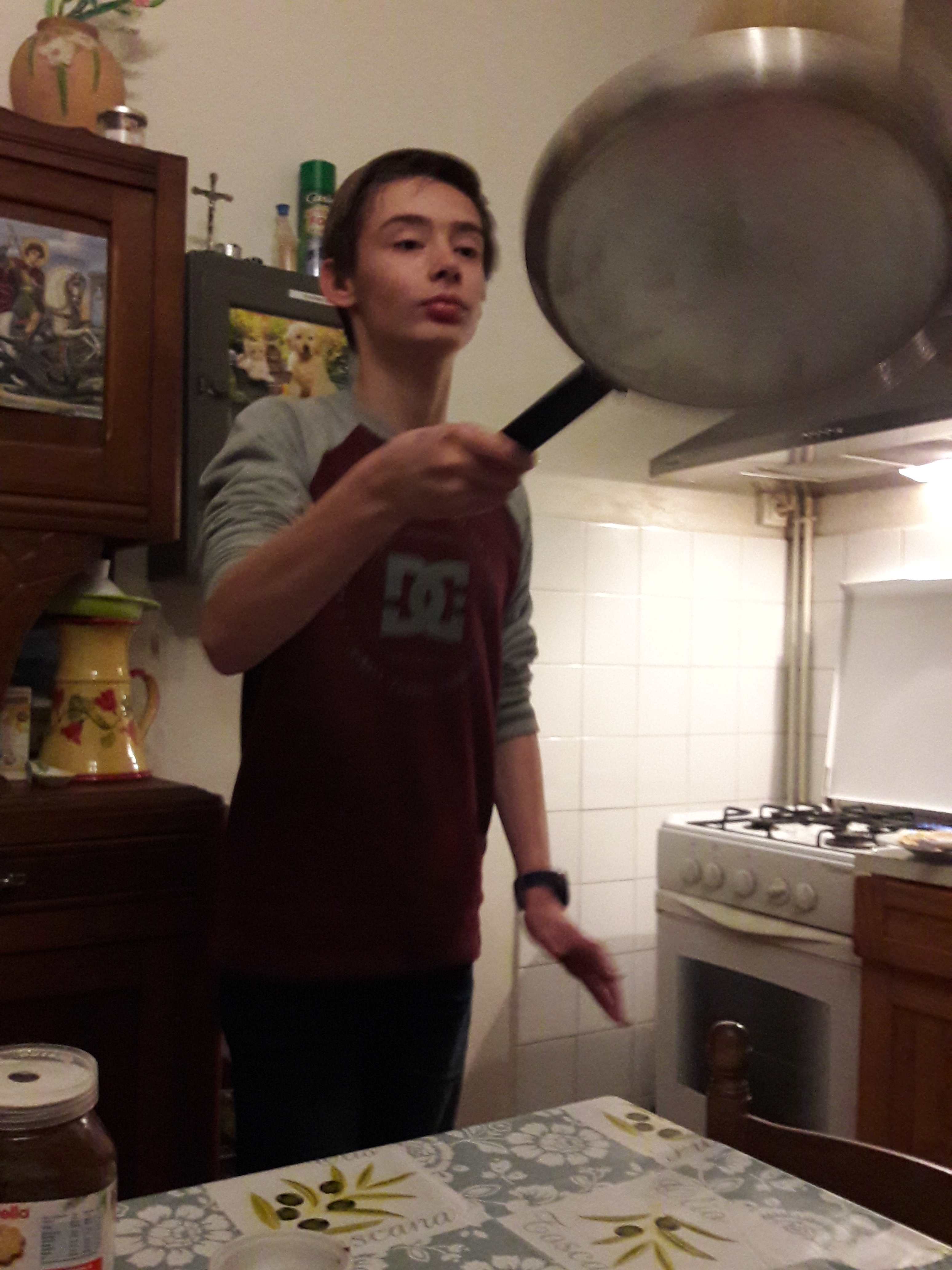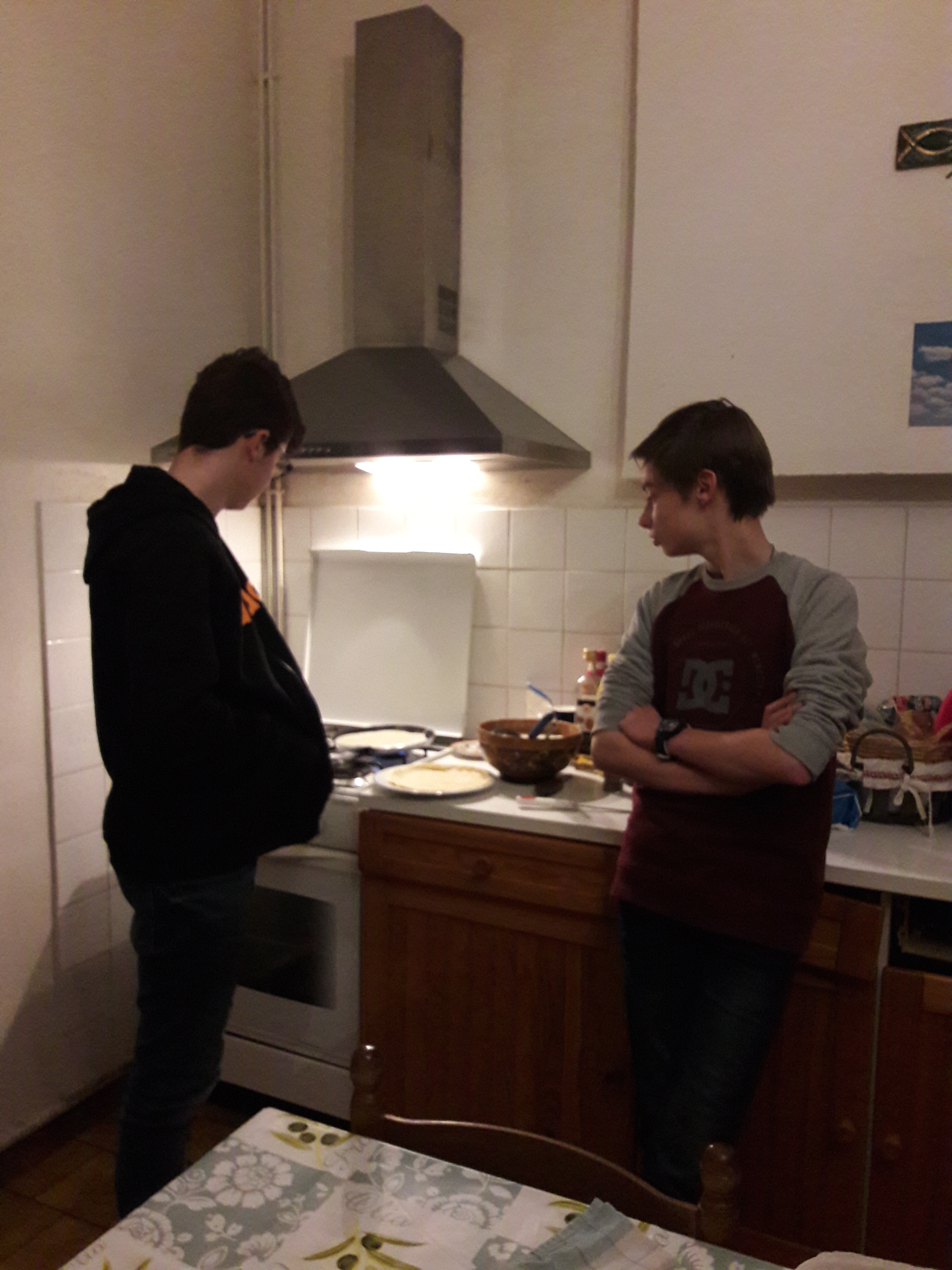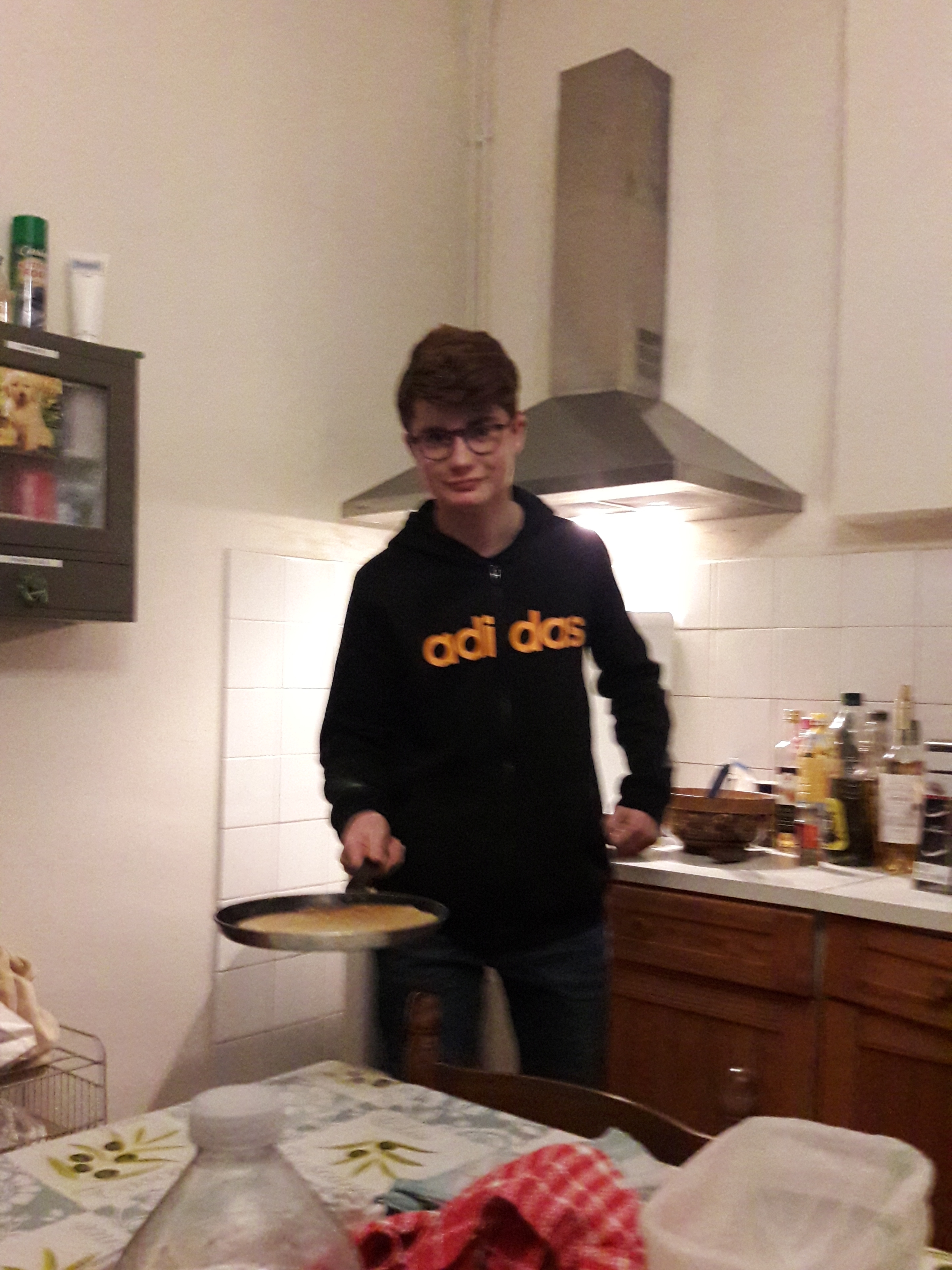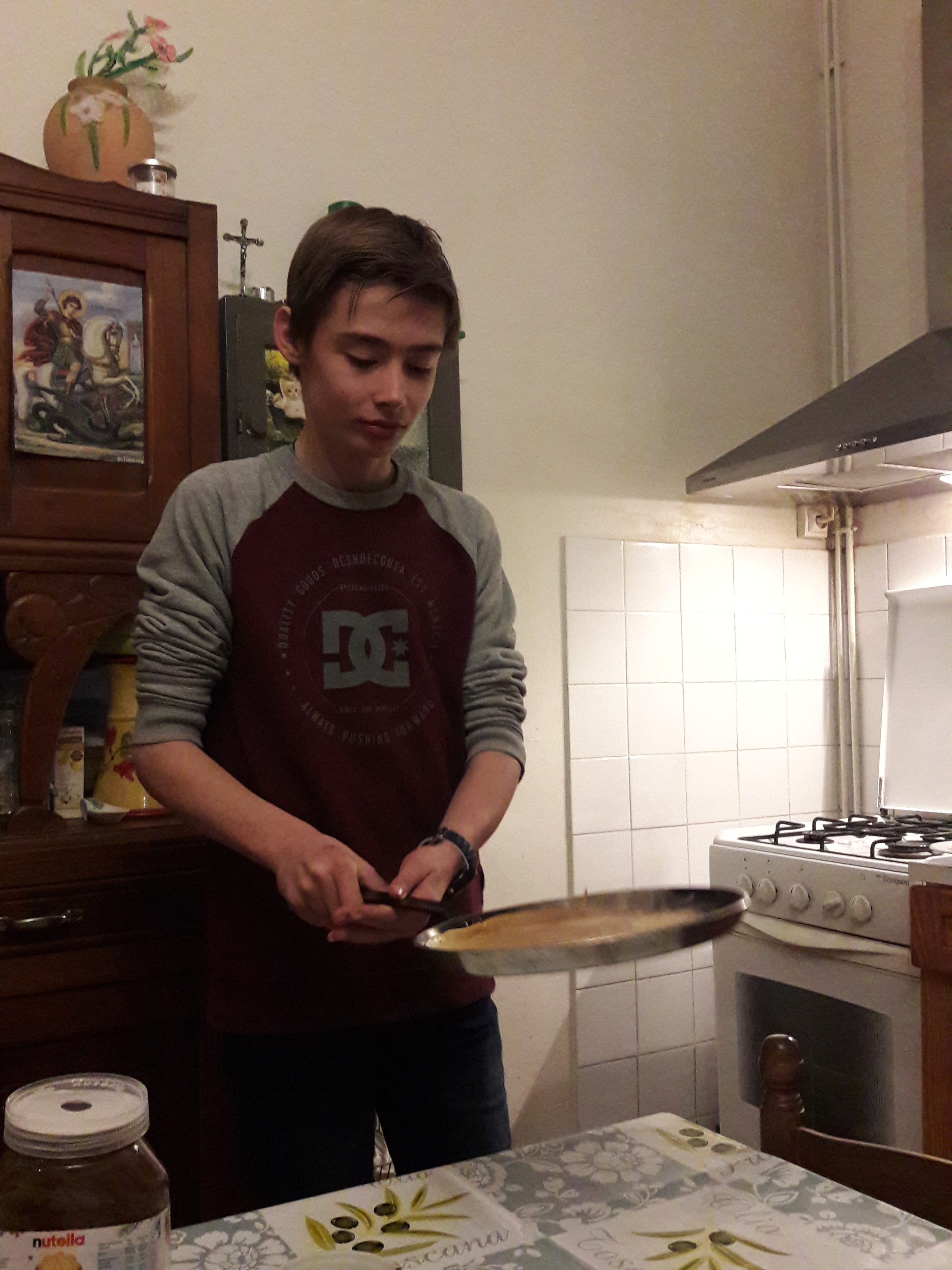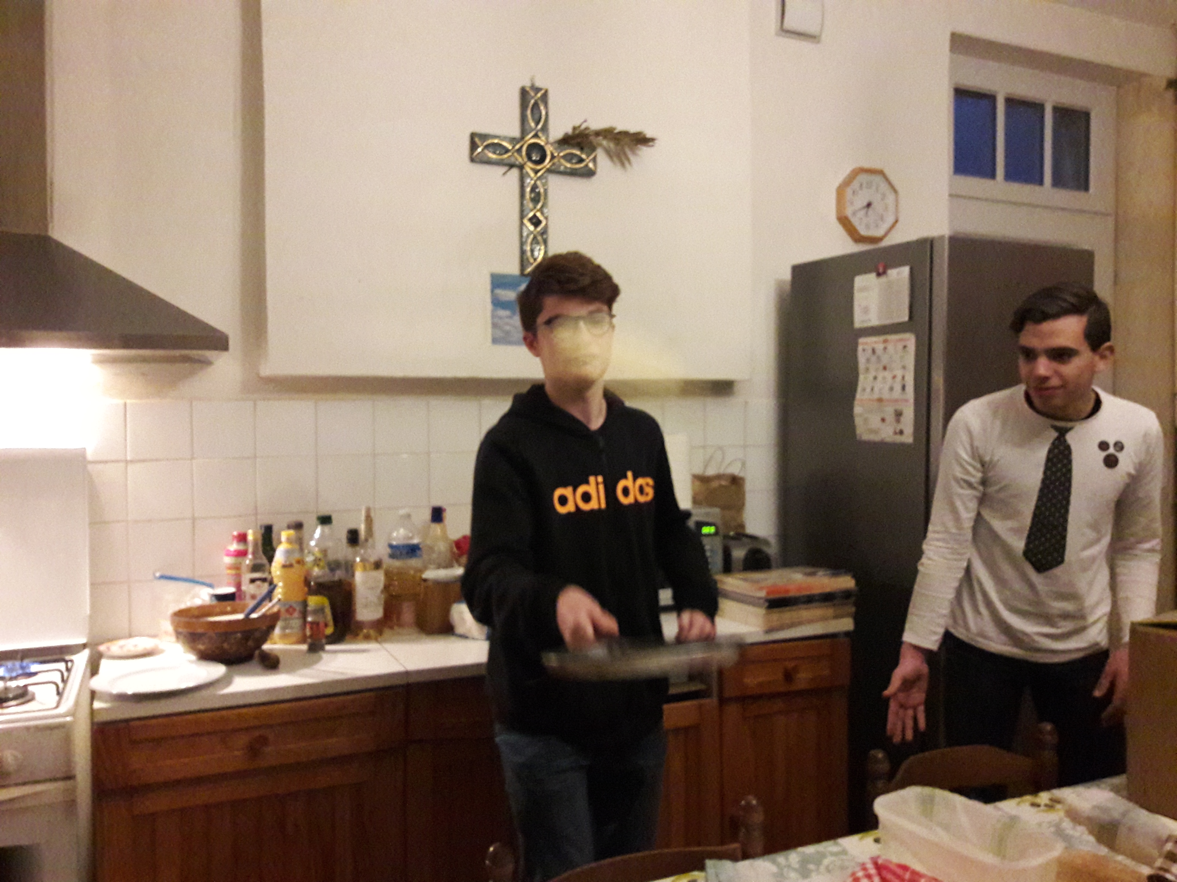 Ce vendredi 2 février, c’est après la messe de 17h00 que , ne dérogeant pas à la règle, le groupe d’aumônerie des 4ème/3ème, c’est lancé dans la confections des traditionnelles crêpes, sous la direction du père Christophe,