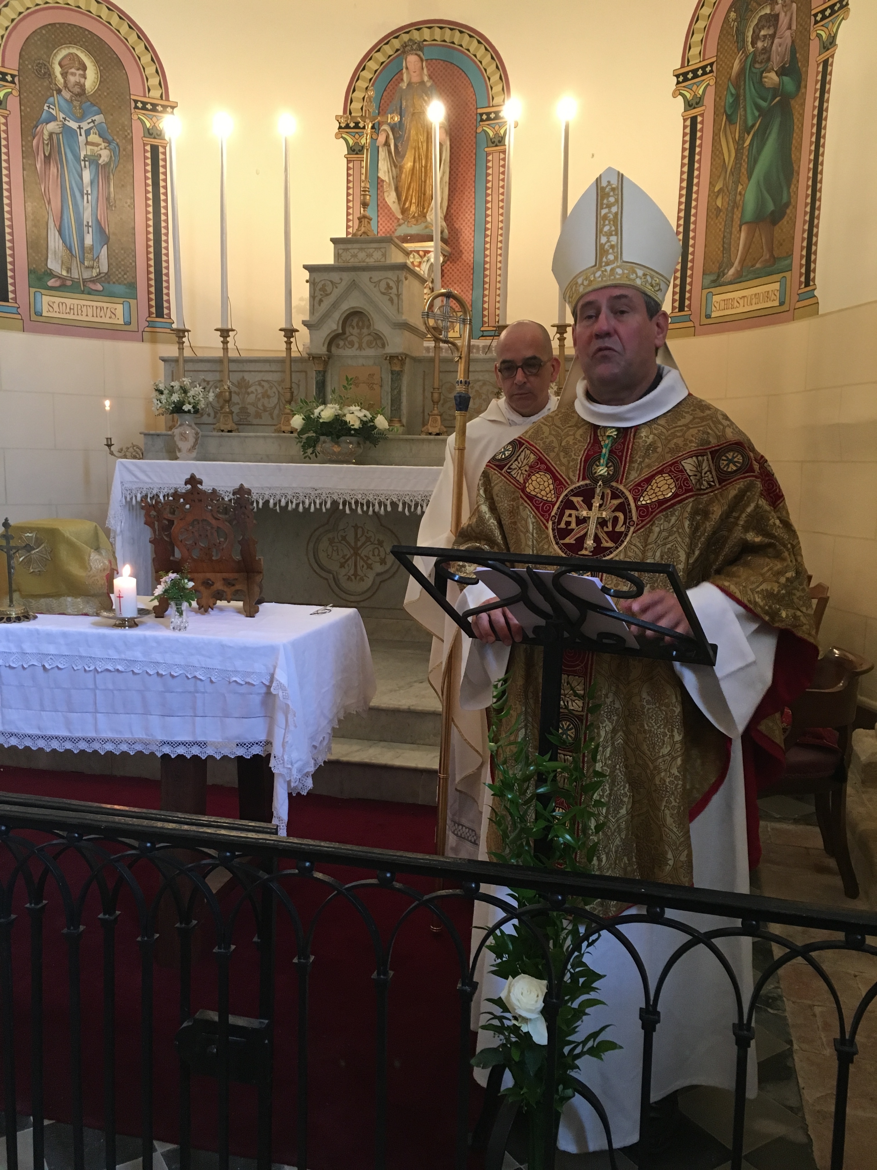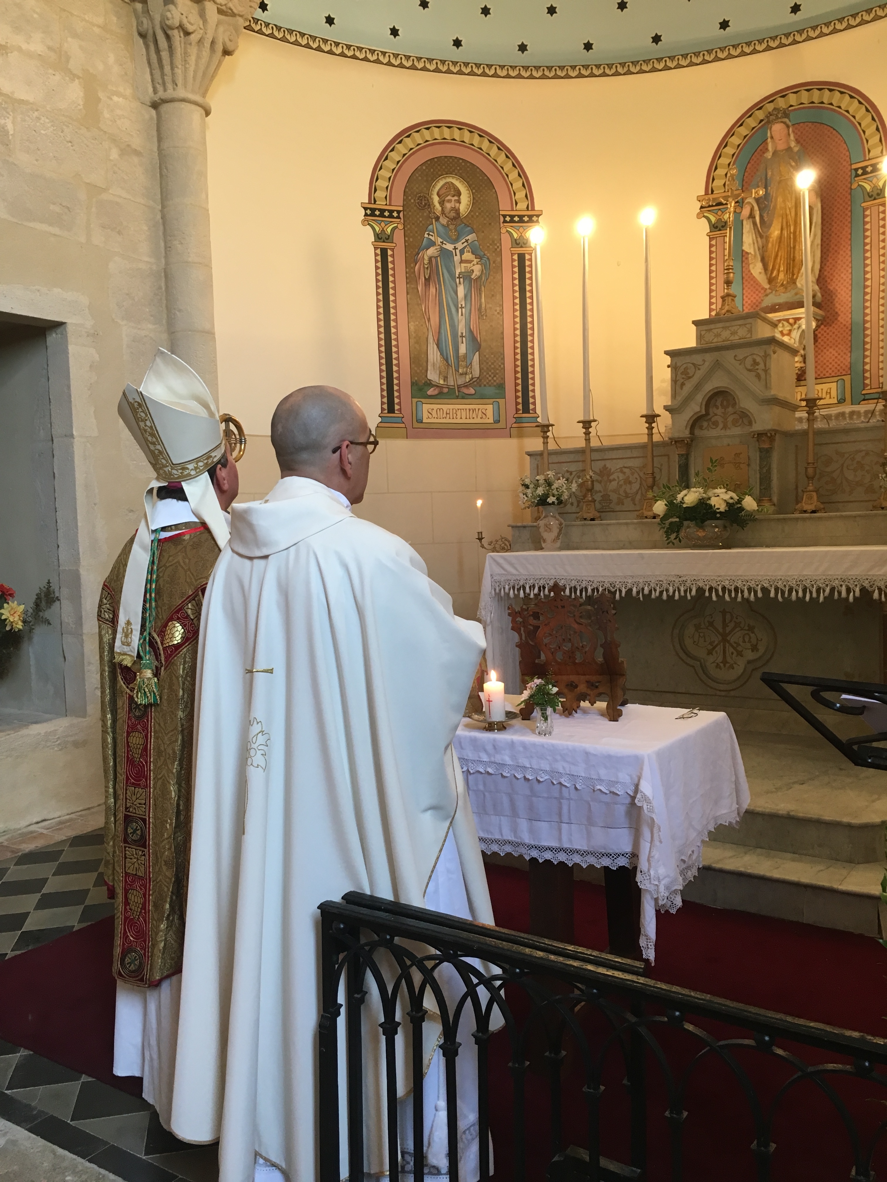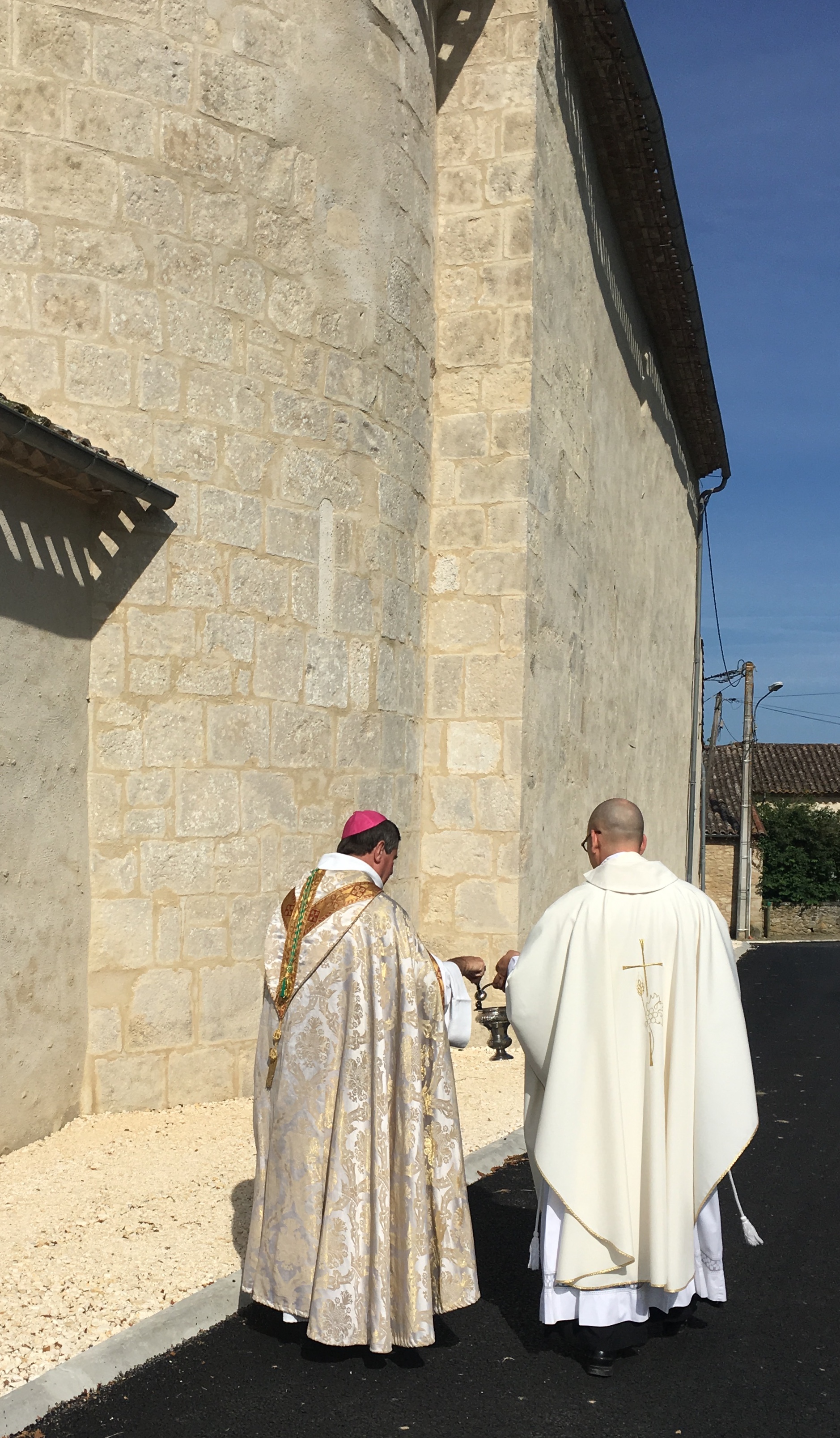 Bénédiction de la rénovation extérieure de l’église de St Martin de Lerm par Monseigneur Le Vert, évêque auxiliaire. L’intérieur avait été rénové en 2006.