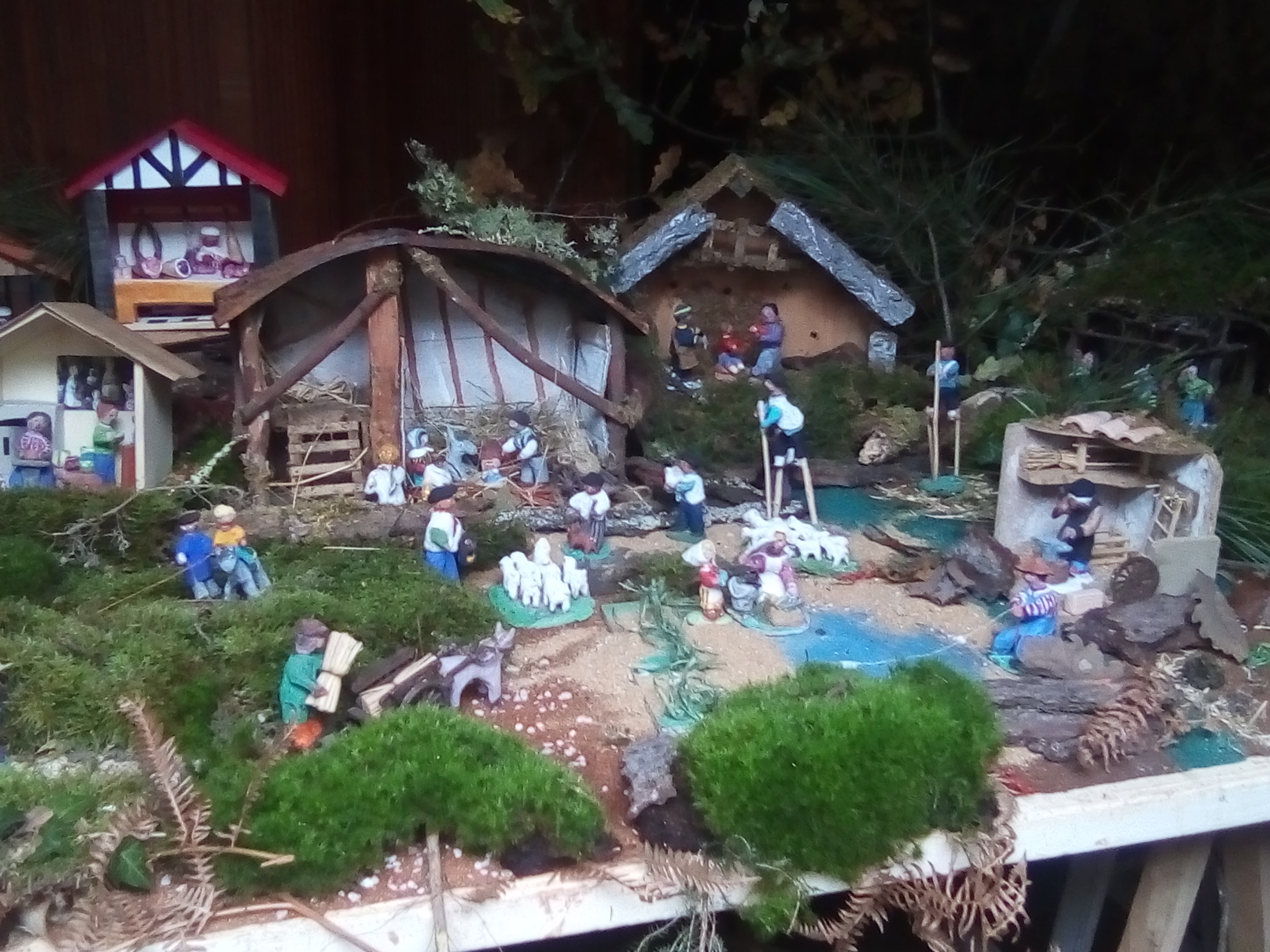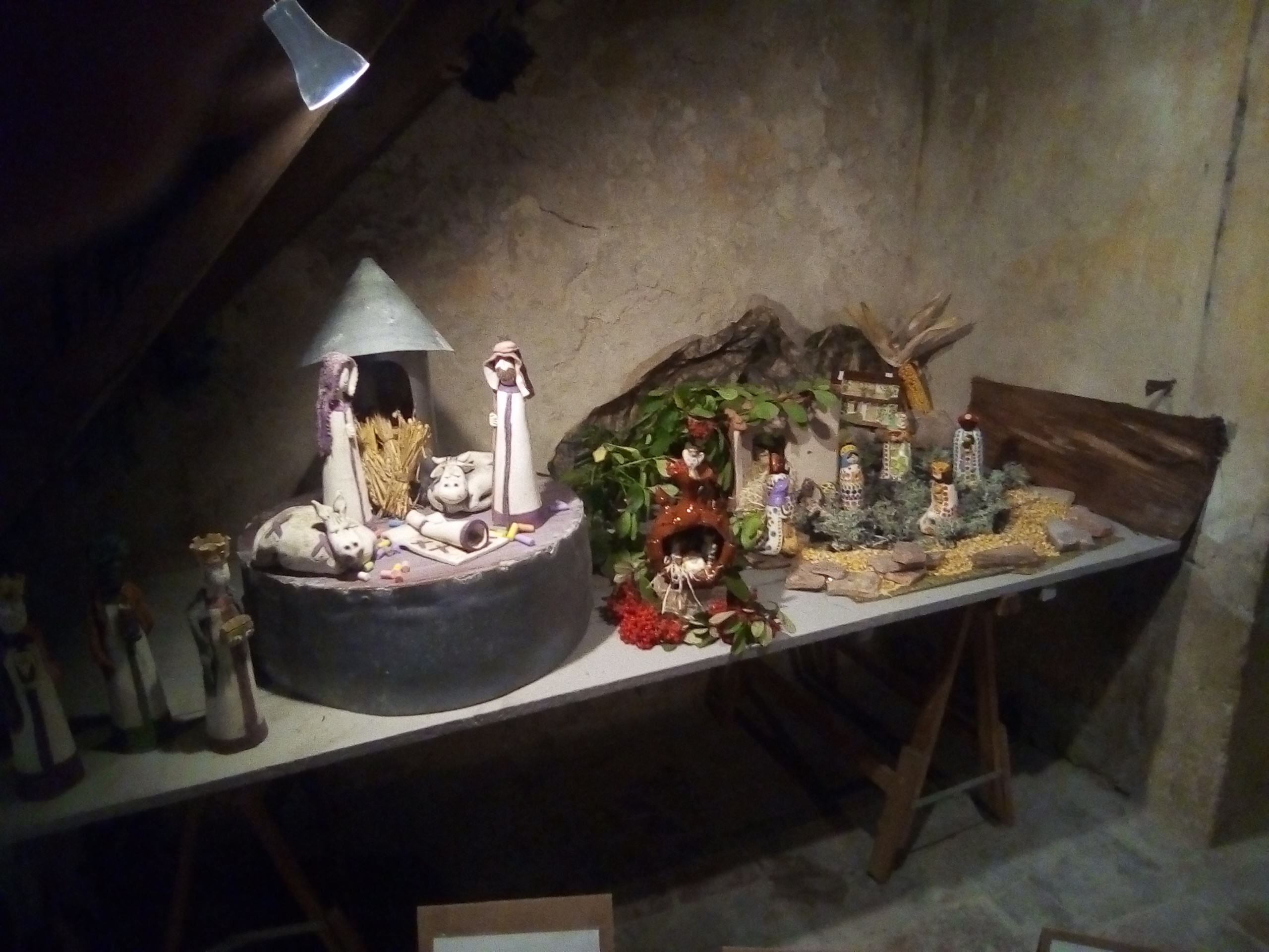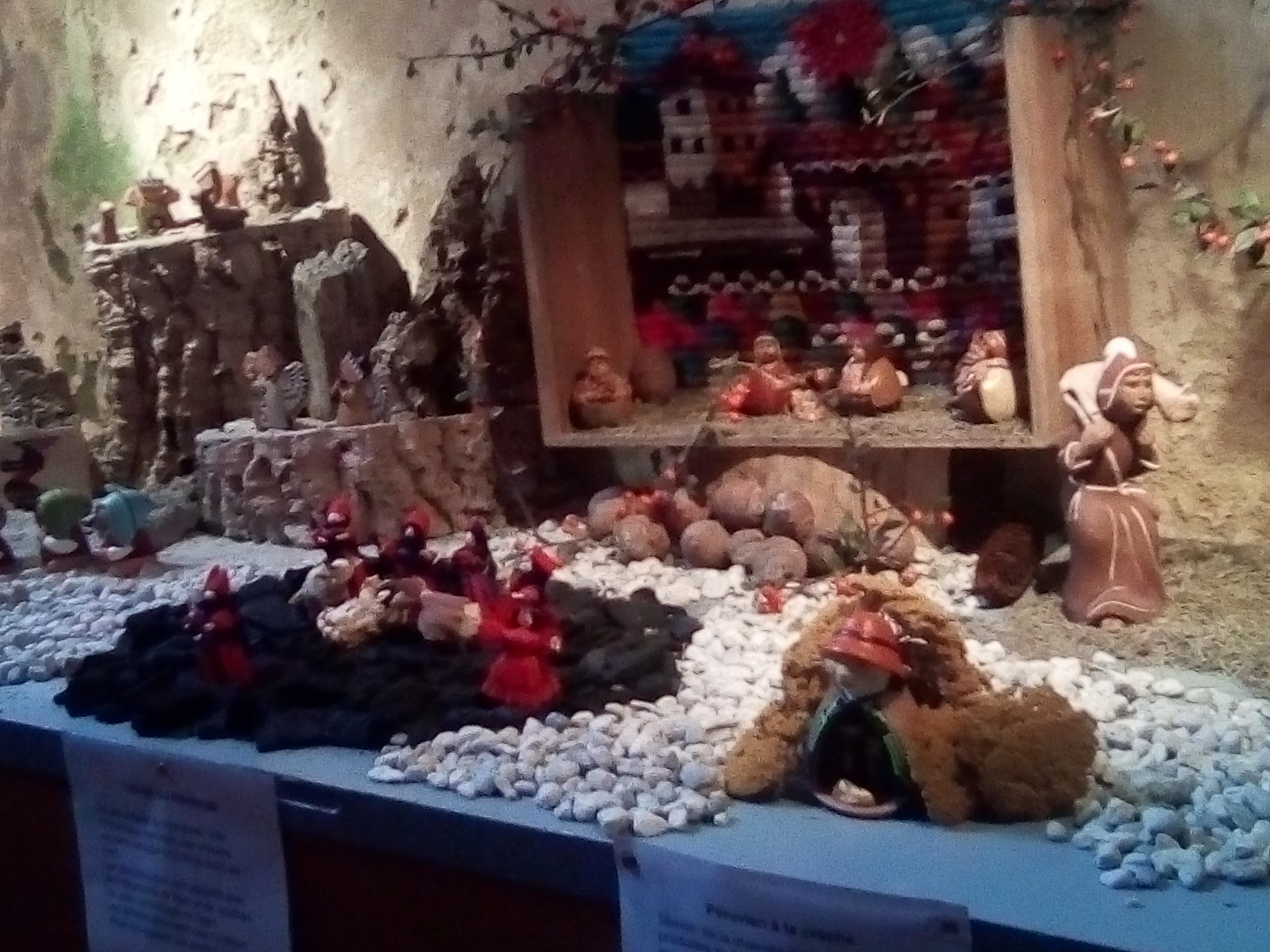 L’association organisatrice « les Mains d’Argile » met en scène dans les ruelles au gré des fenêtres, remises ou balcons et dans l’église des crèches très variées