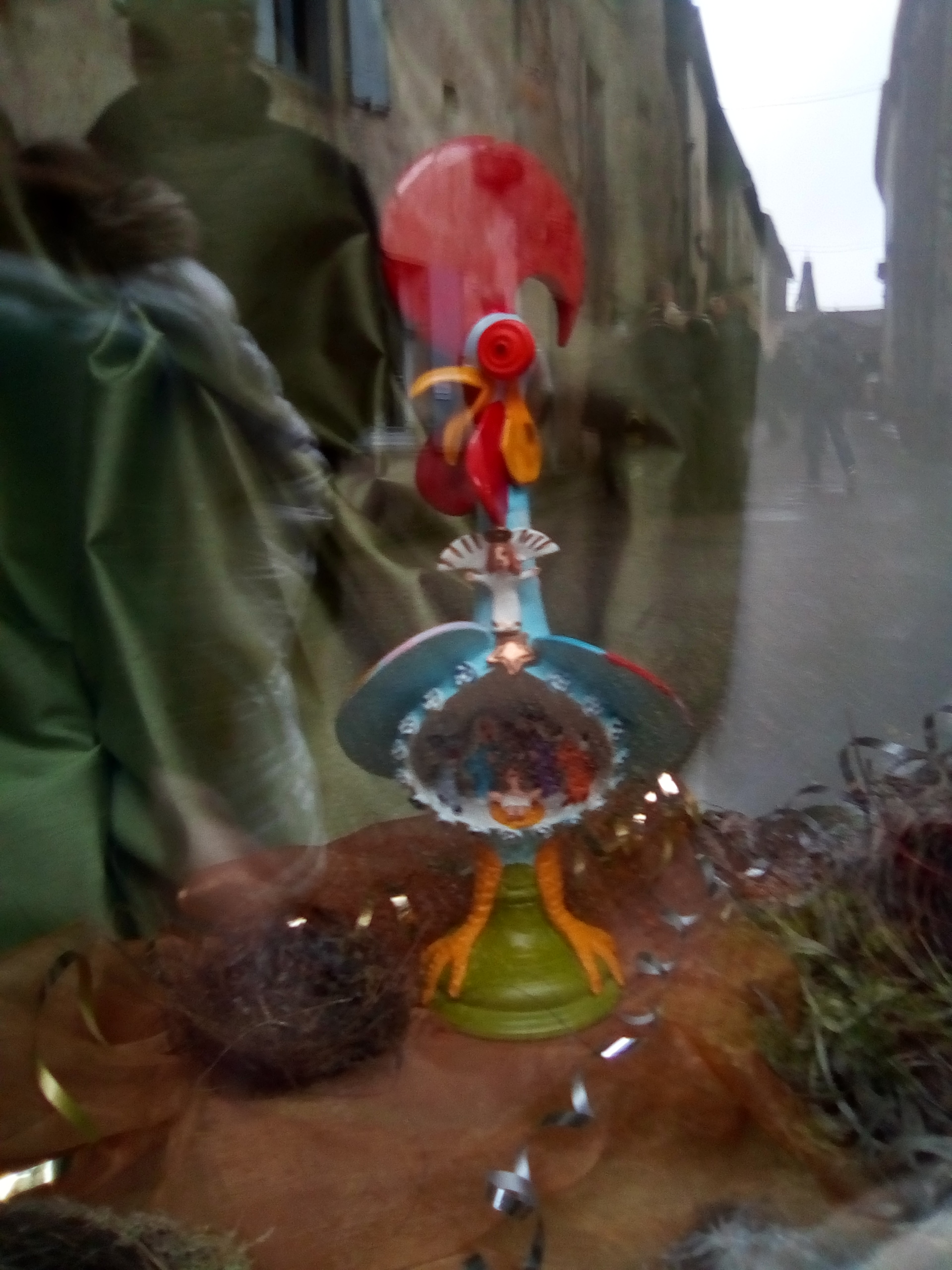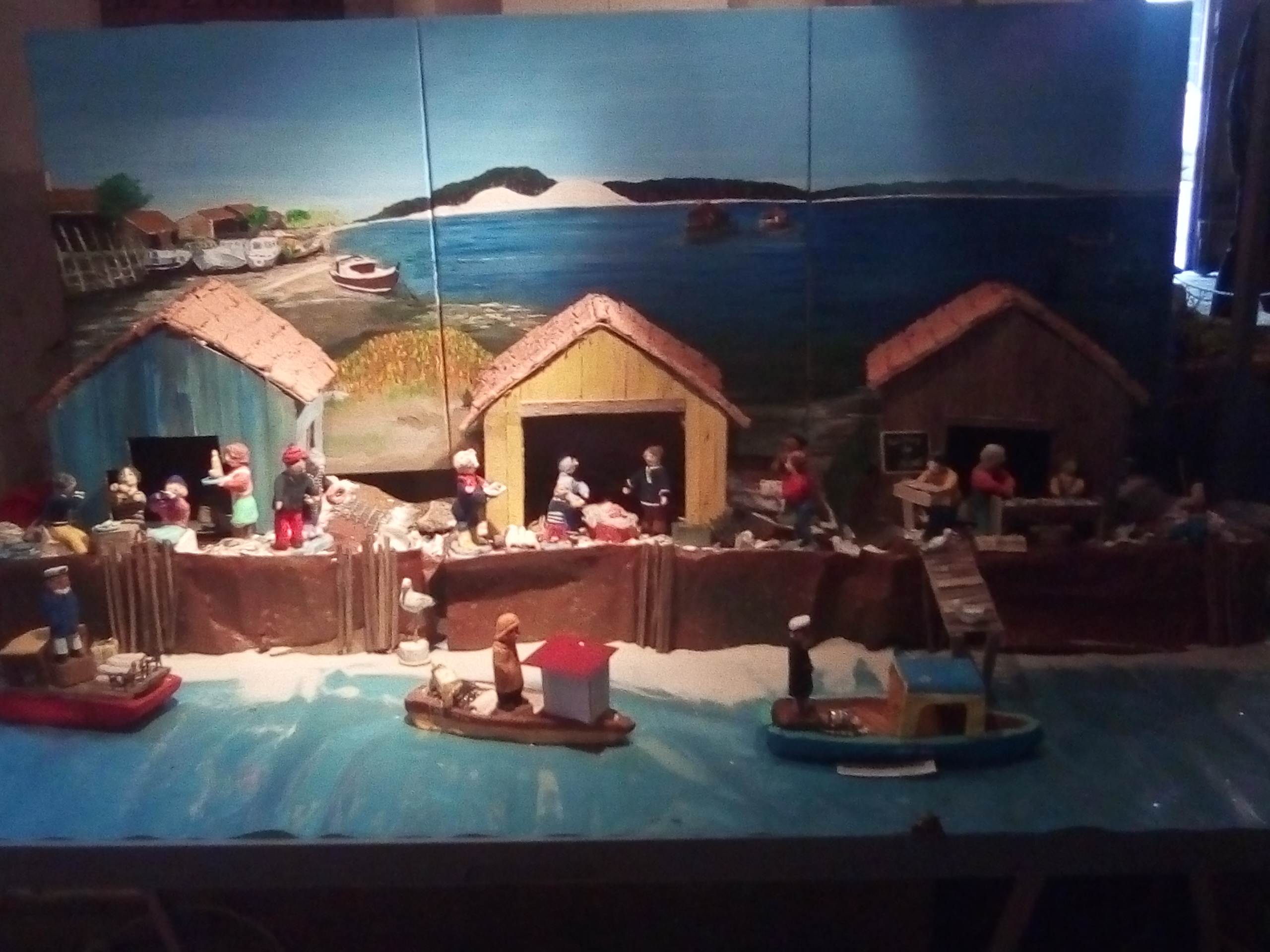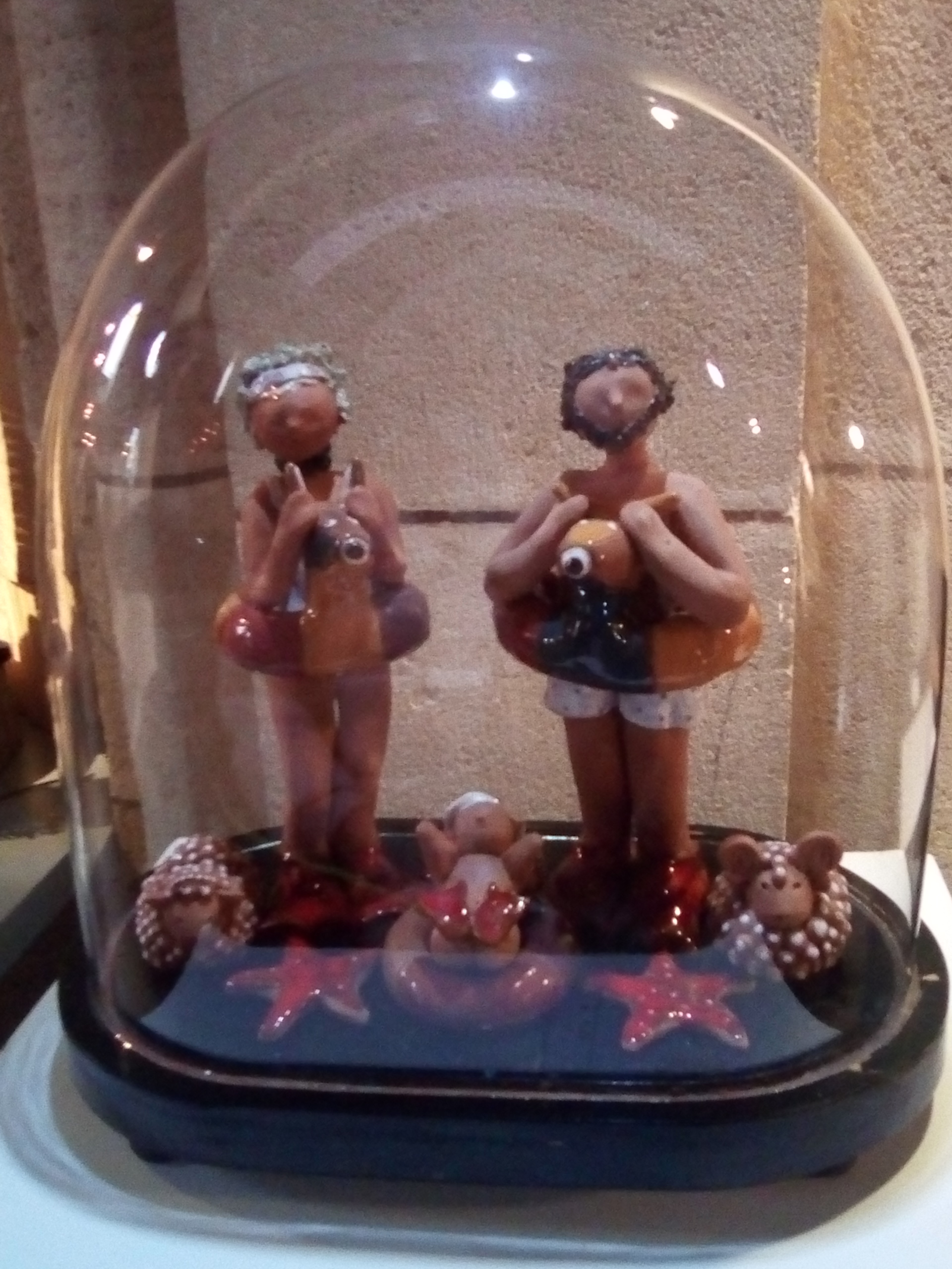 L’association organisatrice « les Mains d’Argile » met en scène dans les ruelles au gré des fenêtres, remises ou balcons et dans l’église des crèches très variées
