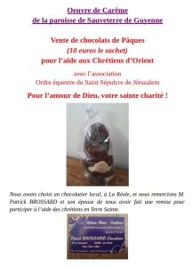Chers amis paroissiens, Le 24 mai, notre traditionnelle kermesse annuelle se déroulera au Moulin de Pinquet. Pour faire de cette journée un moment mémorable, nous avons besoin de votre aide ! Notre tombola est alimentée par vos dons, qu’il s’agisse de bons-cadeaux ou de lots. Vous pouvez les déposer au presbytère ou à la fin …